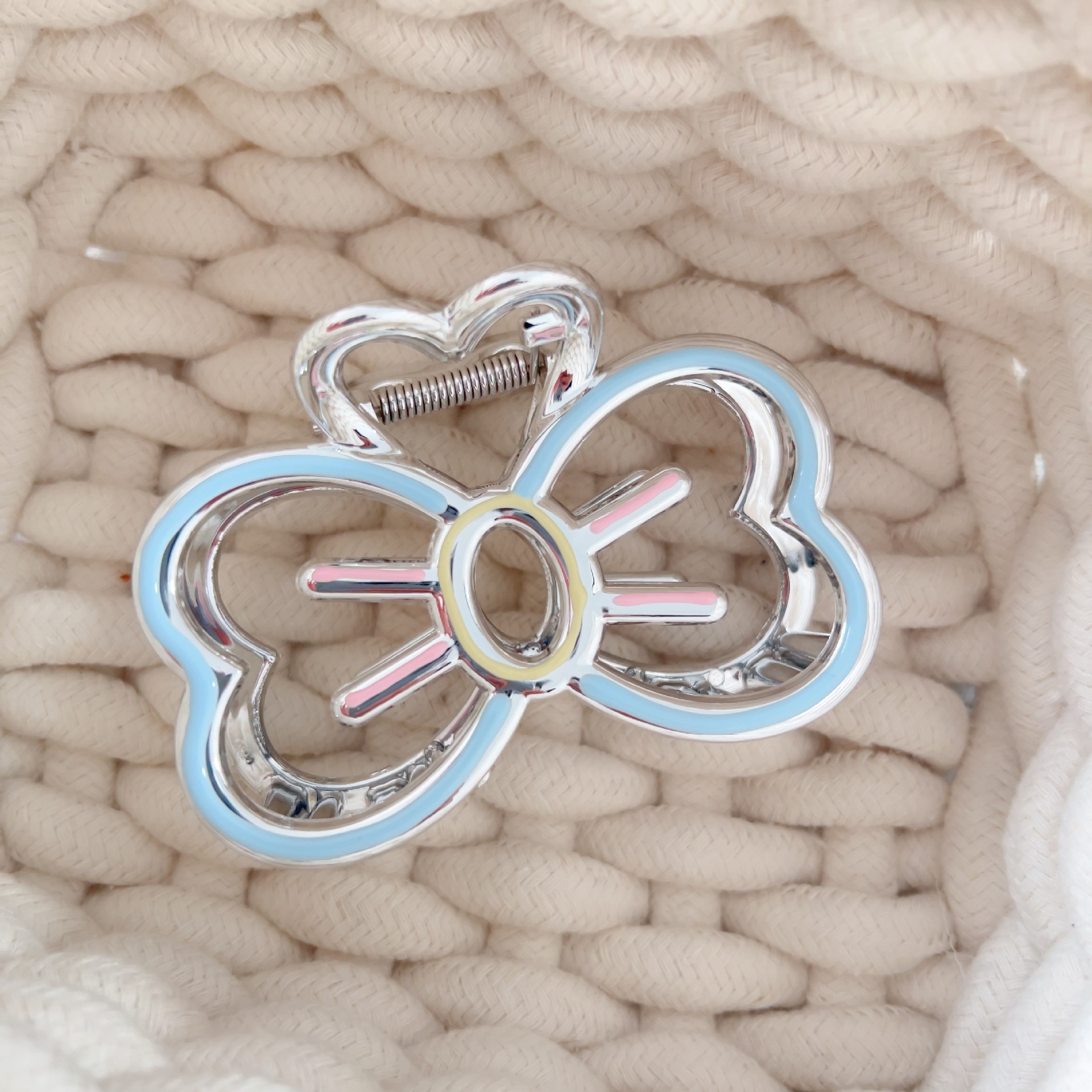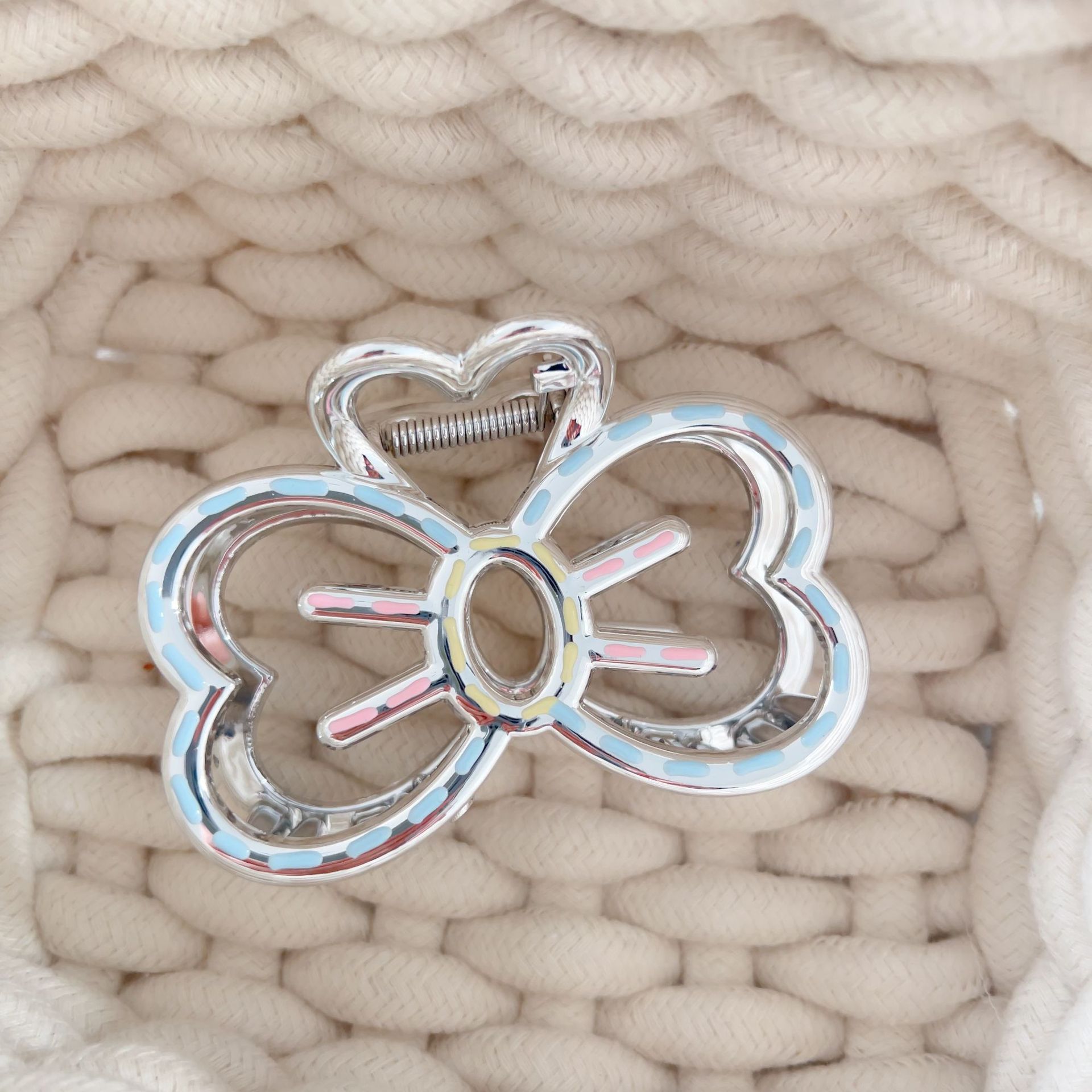 ina ornament new sweet cutout bowknot oil dripping premium silver grip exquisite and versatile shark clip hair accessories 中文版
