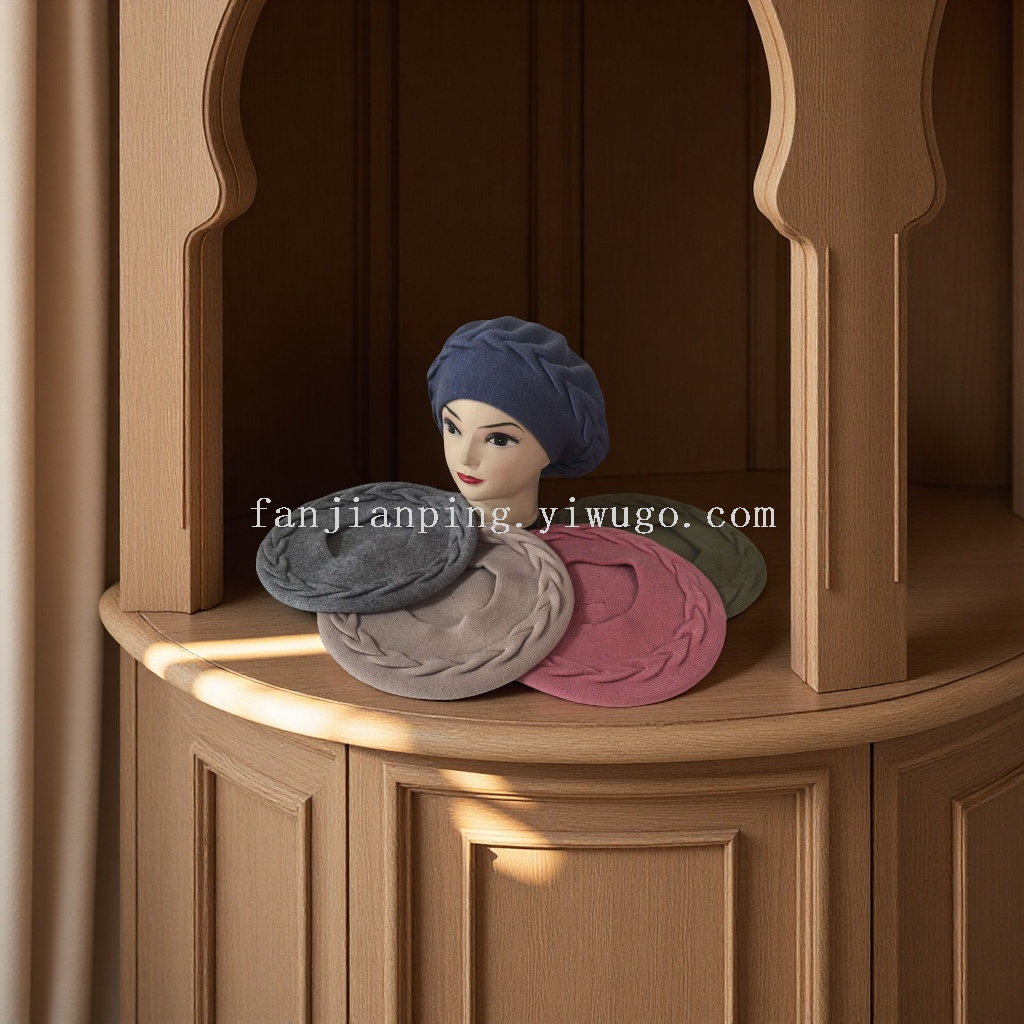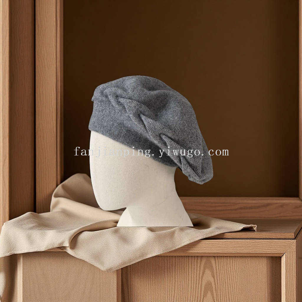new cashmere beret autumn and winter women's jacquard knitted warm painter cap japanese high quality show face small hat 中文版