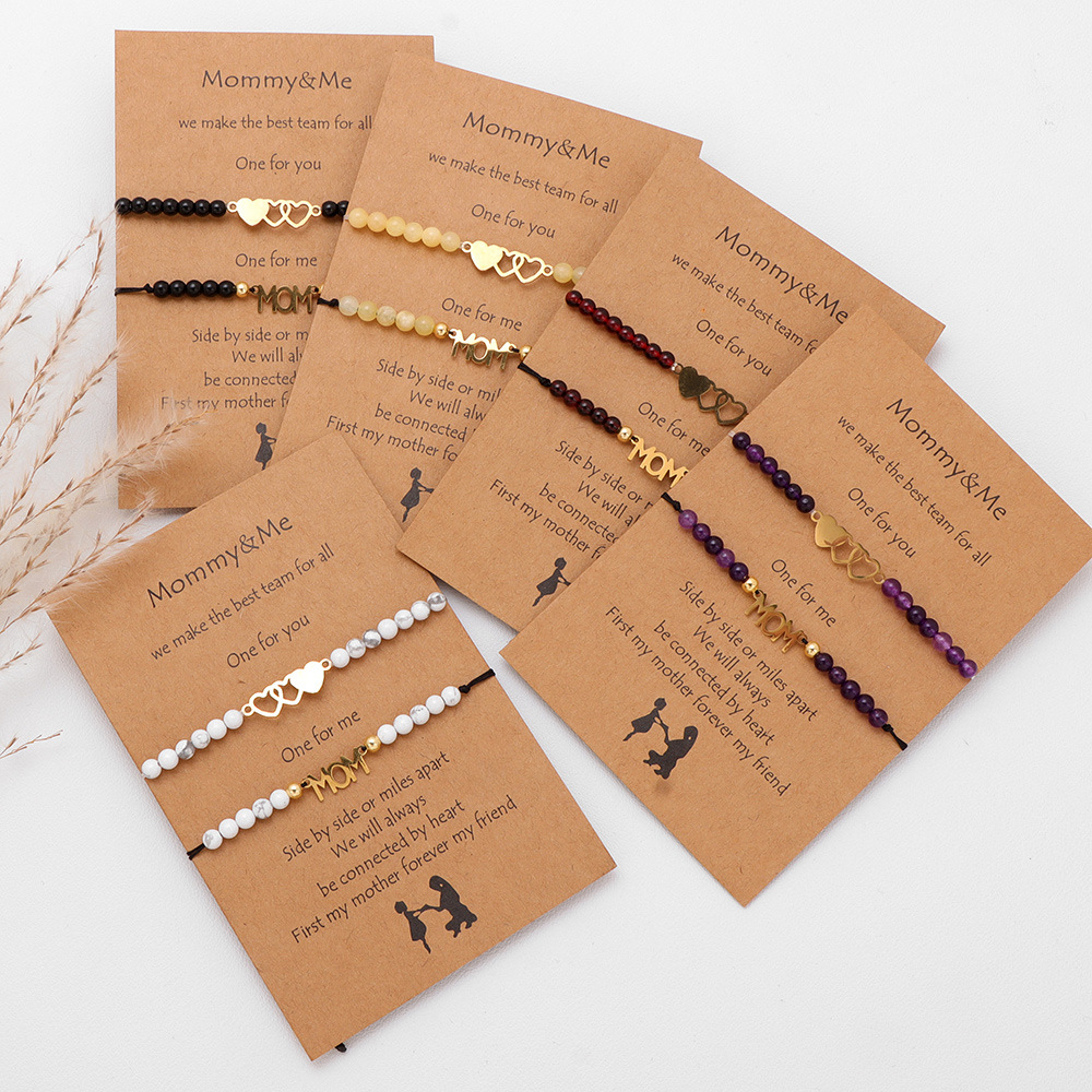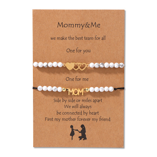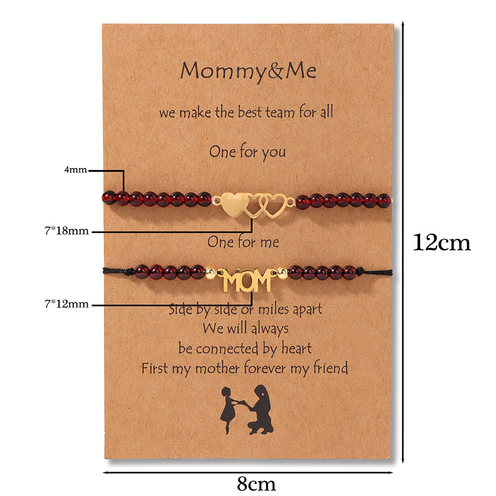 商品名称:4mm stone beads 2-piece set mother-daughter bracelet stainless steel heart accessories