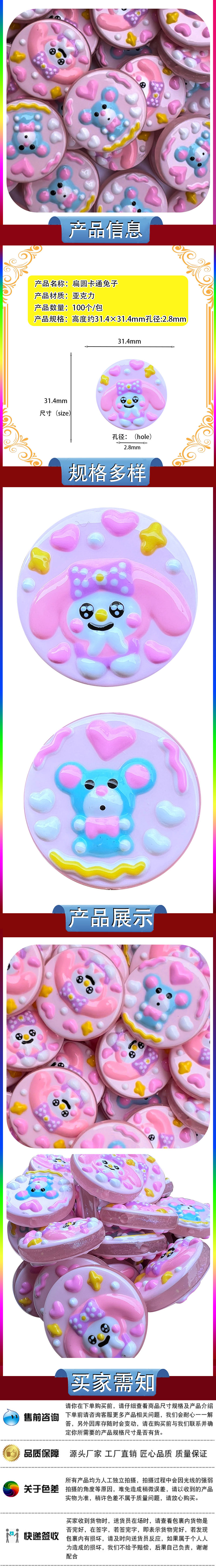 flat round cartoon rabbit beads hand-painted new year mobile phone charm string beads materials diy beads material scattered beads wholesale 中文版