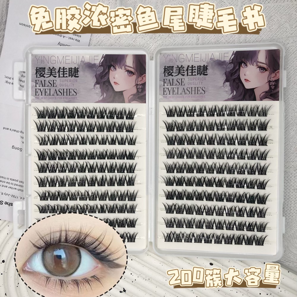 20 rows of 200 clusters glue-free thick fishtail eyelash book