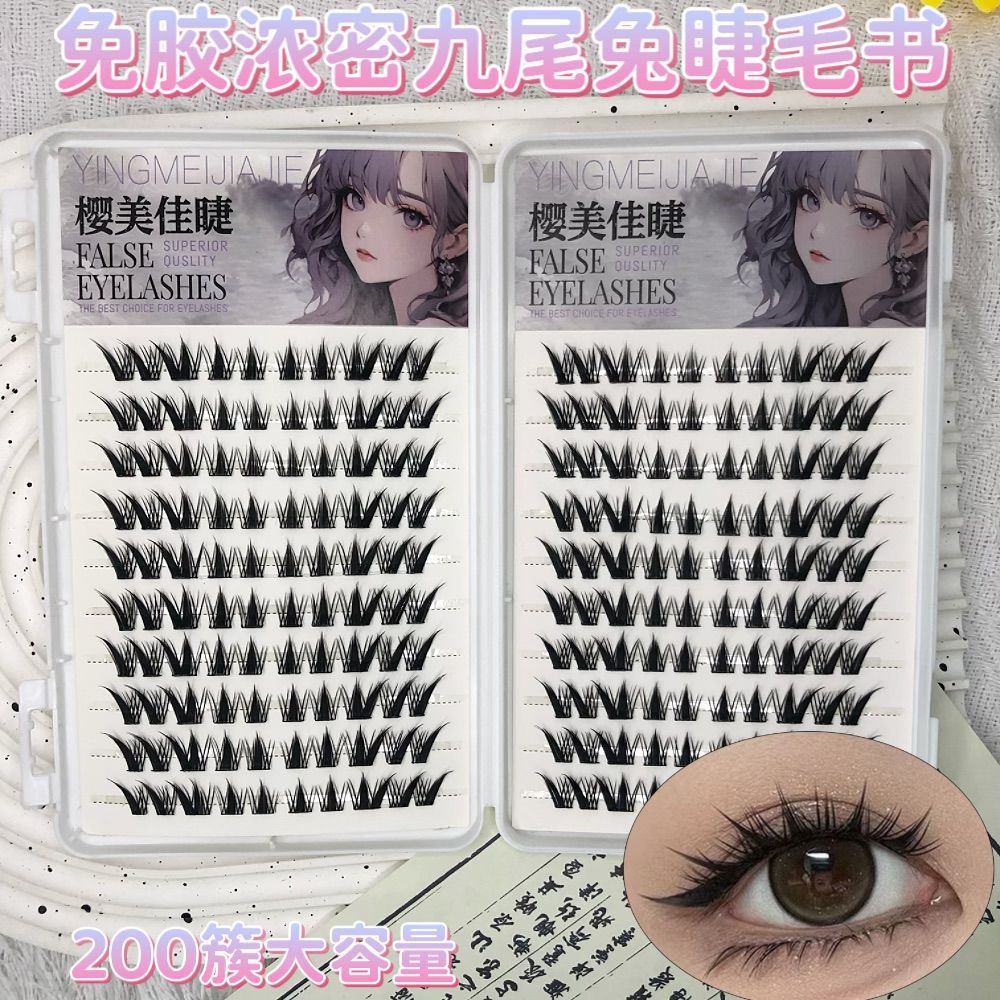 20 rows of 200 clusters glue-free thick nine-tailed rabbit eyelash book