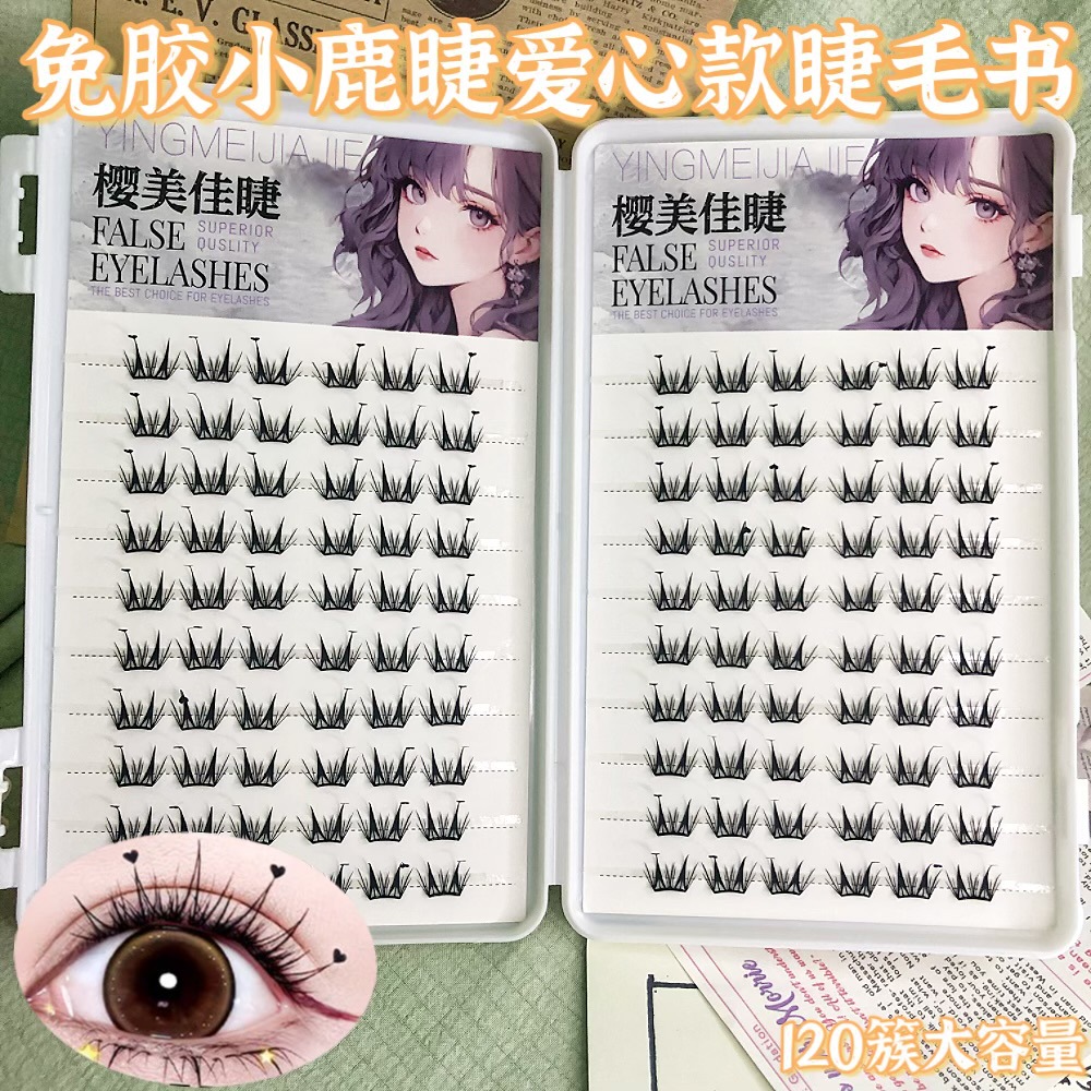 20 rows of 120 clusters glue-free flakelet deer eyelashes love eyelash book
