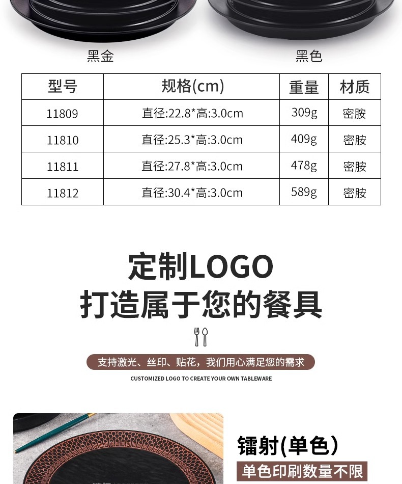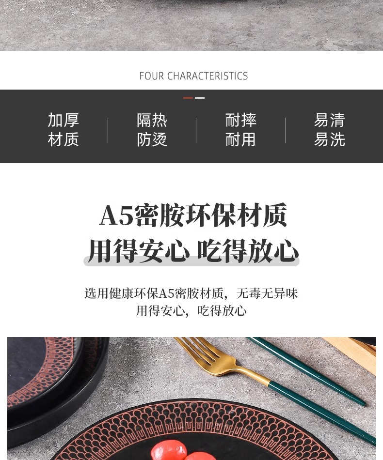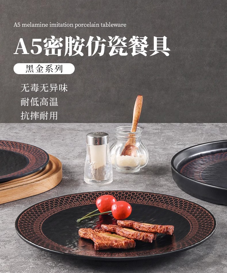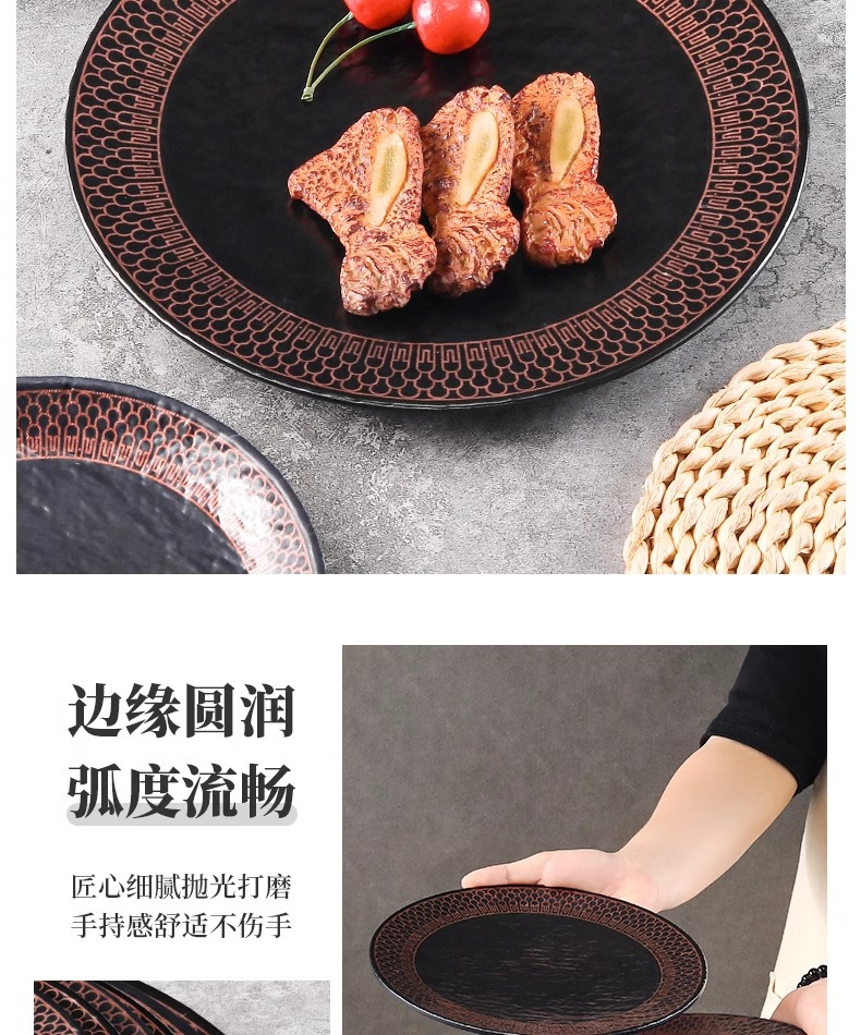 melamine plate plastic imitation porcelain round plate flat plate hotel restaurant dish western food/steak dinner plate barbecue plate commercial use