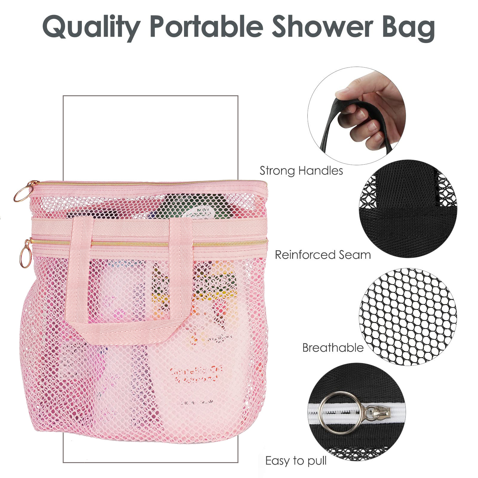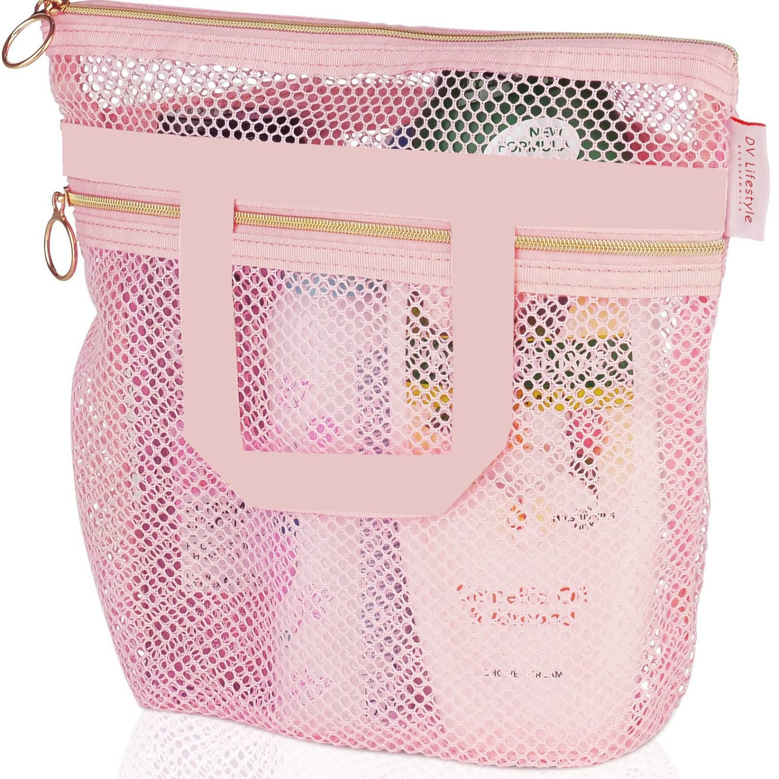 pink mesh wash bag