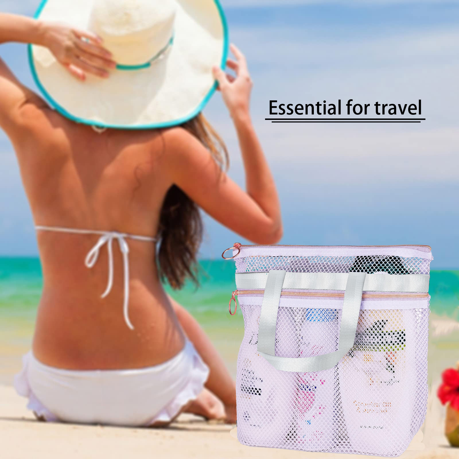 white mesh wash bag