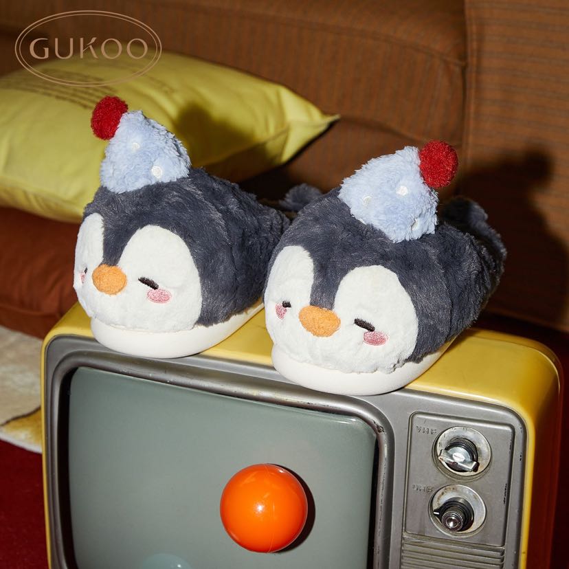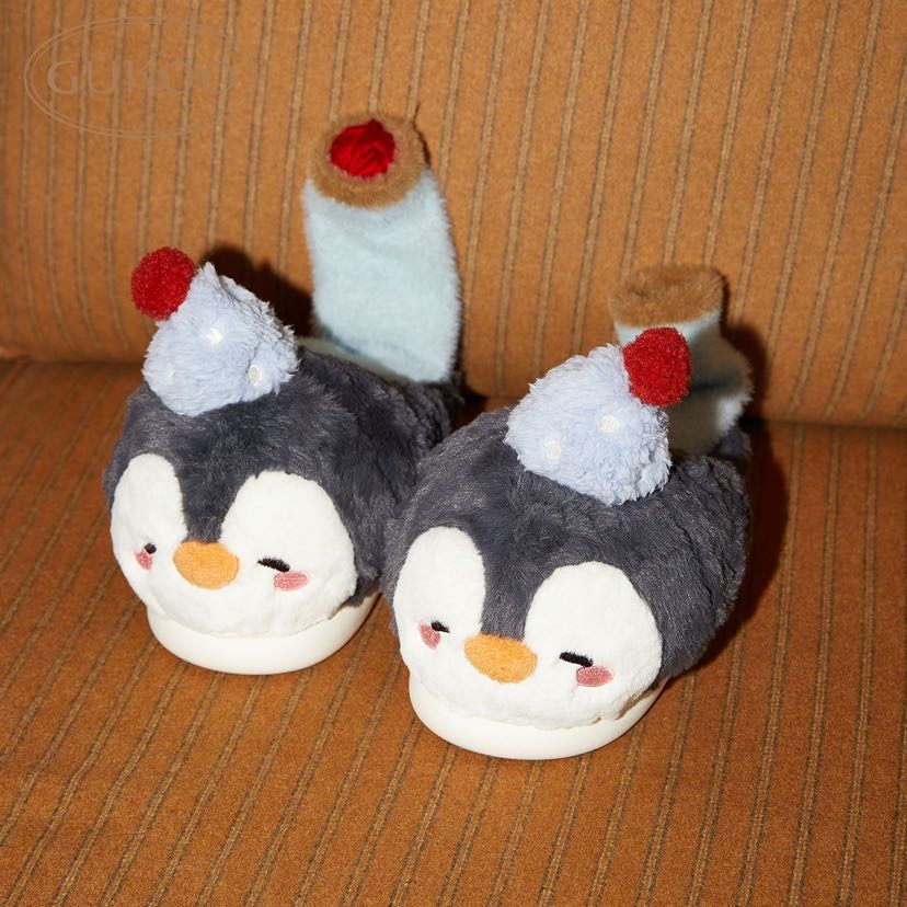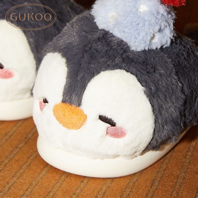 new cartoon slippers women's winter penguin cute new fleece-lined warm ladies home cotton slippers 中文版