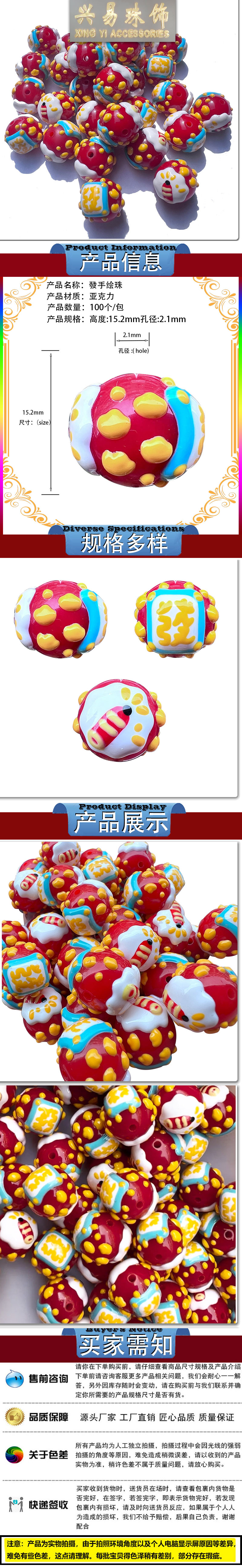 hair hand-painted beads acrylic beaded diy accessories beads mobile phone charm key pendants accessories wholesale handmade material 中文版
