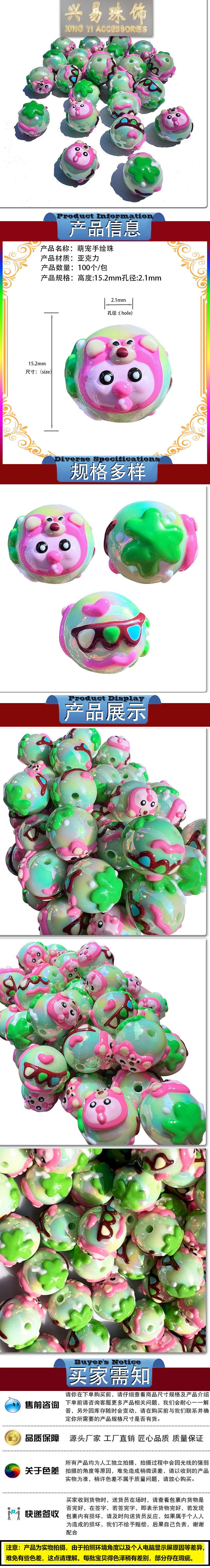 cute pet hand-painted beads cute heavy industry scattered beads diy handmade beaded bracelet mobile phone charm material wholesale accessories 中文版