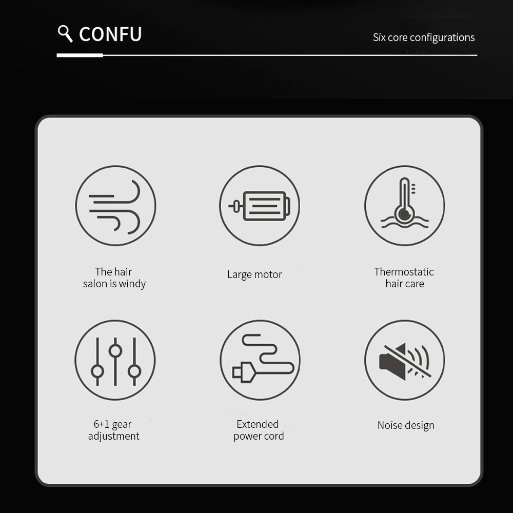with negative ion technology, quick hair drying lock moisture at the same time, say goodbye to frizz, smooth and shiny hair. built-in intelligent temperature control system, adjust the temperature in real time to avoid overheating damage and protect scalp health. ergonomic design, lightweight body, long-time use does not make hands tired, travel household two are suitable.