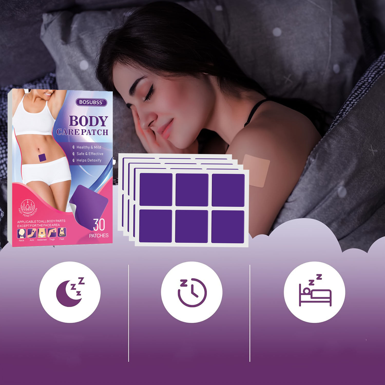 exclusive for cross-border organic essence oil sleep stickers good night paste herb sleep stickers 30pcs 中文版