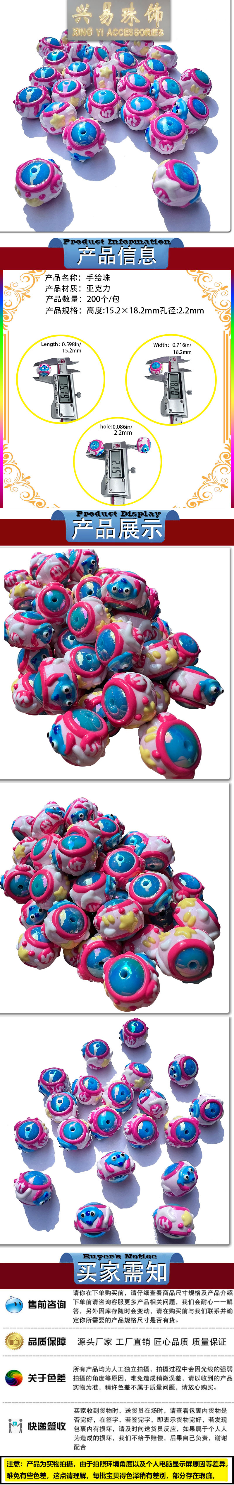 cute hand-painted beads handmade diy mobile phone charm heavy oil hand-painted beads with holes ornament accessories 中文版