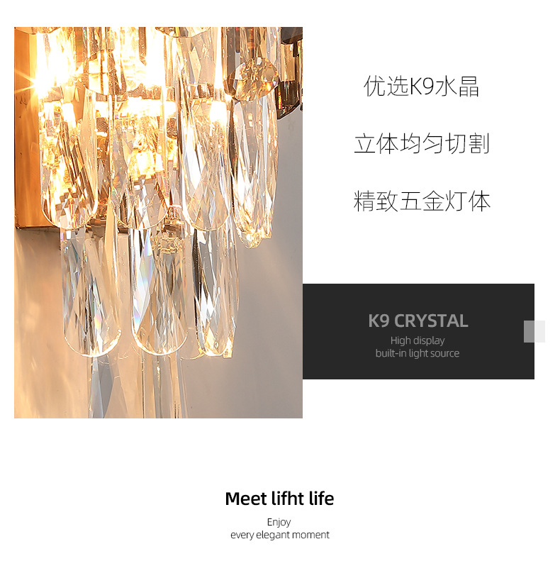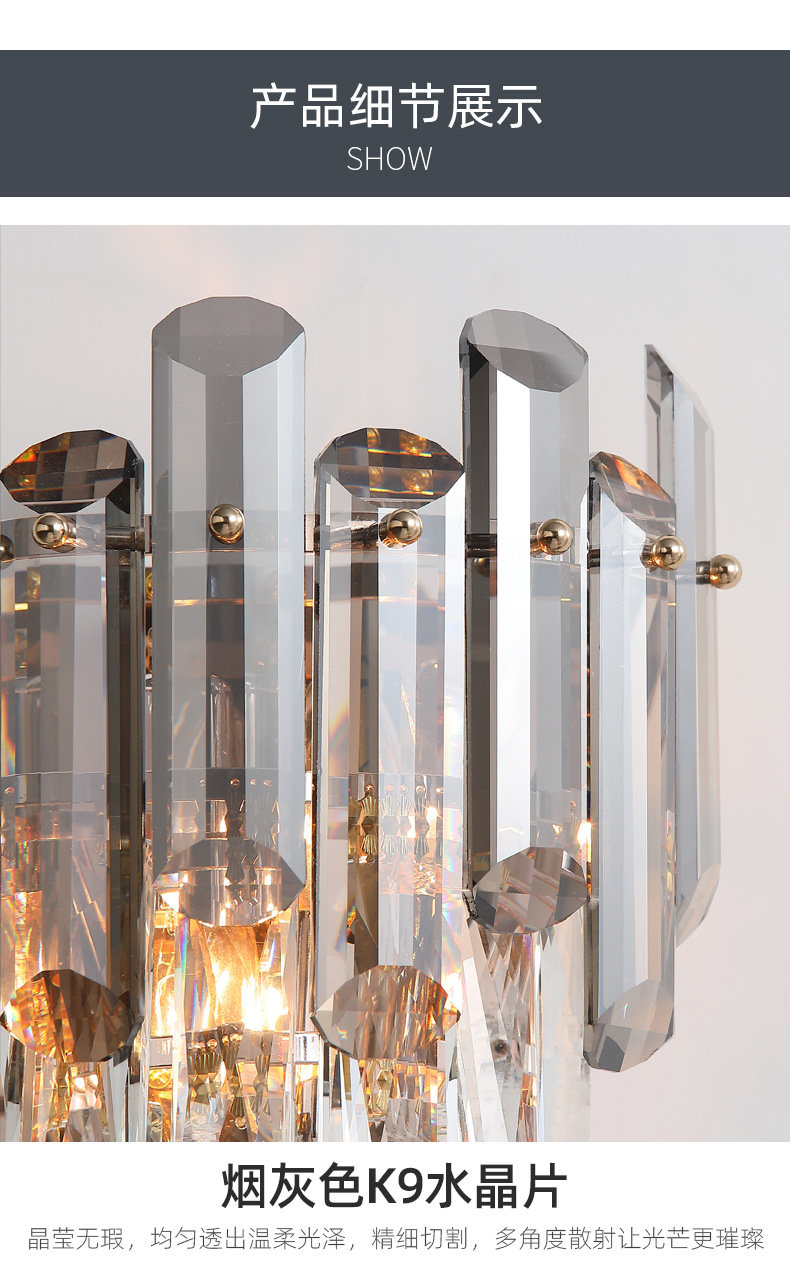 light luxury crystal wall lamp smoky gray tone living room interior tv wall light bulb modern bedroom room bedside lamps 中文版