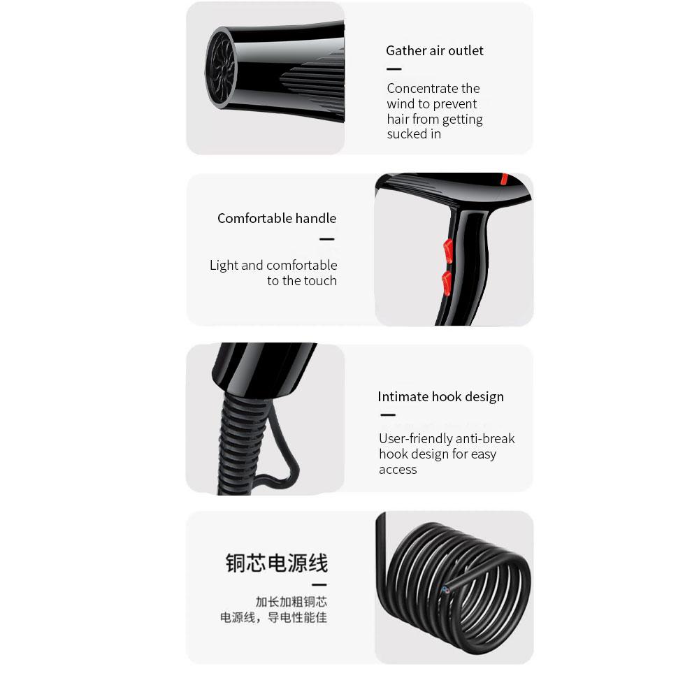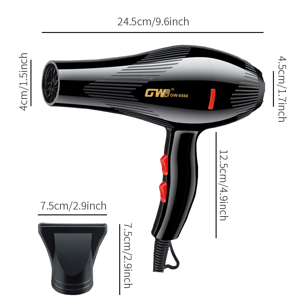 [high-power hair dryer] quick hair drying, care for hair! adopt 3000w high-power motor, strong wind force, quick-drying in 3 minutes, save your precious time. intelligent constant temperature technology to avoid high temperature damage, lock hair moisture, say goodbye to frizz fork. low noise design, enjoy quiet blowing time. voltage: 110v-220v power: 3000w frequency: 50/60hz box size: 27*24.5*10.5 box gauge: 65*50*56 gross weight 21 net weight: 20 packing number: 40pcs