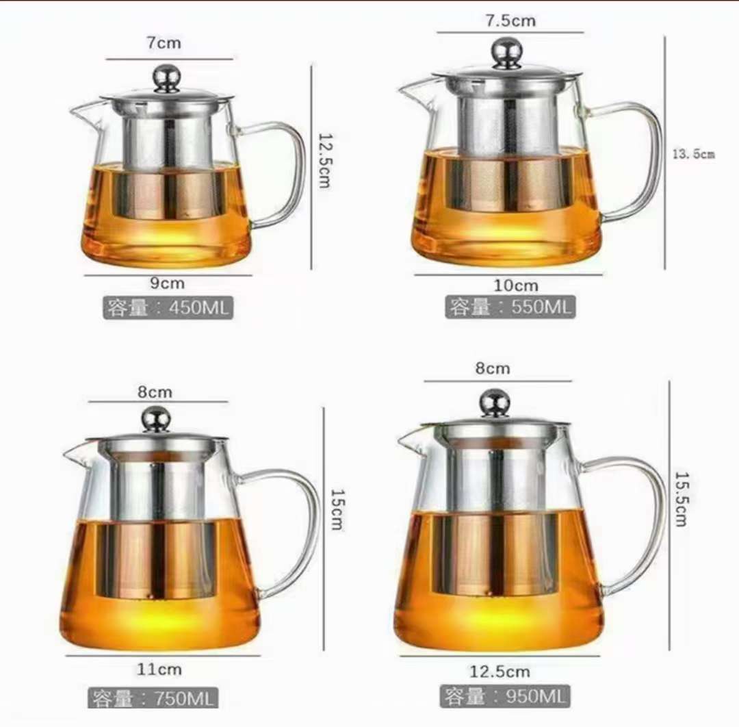 high borosilicate teapot triangle straight water pot stainless steel liner filter teapot heat-resistant glass tea maker 中文版