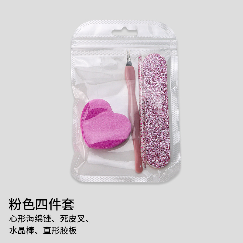 rose red & light pink 4-piece set (polishing strip + crystal stick + heart-shaped sponge + nipper for removing dead skin)