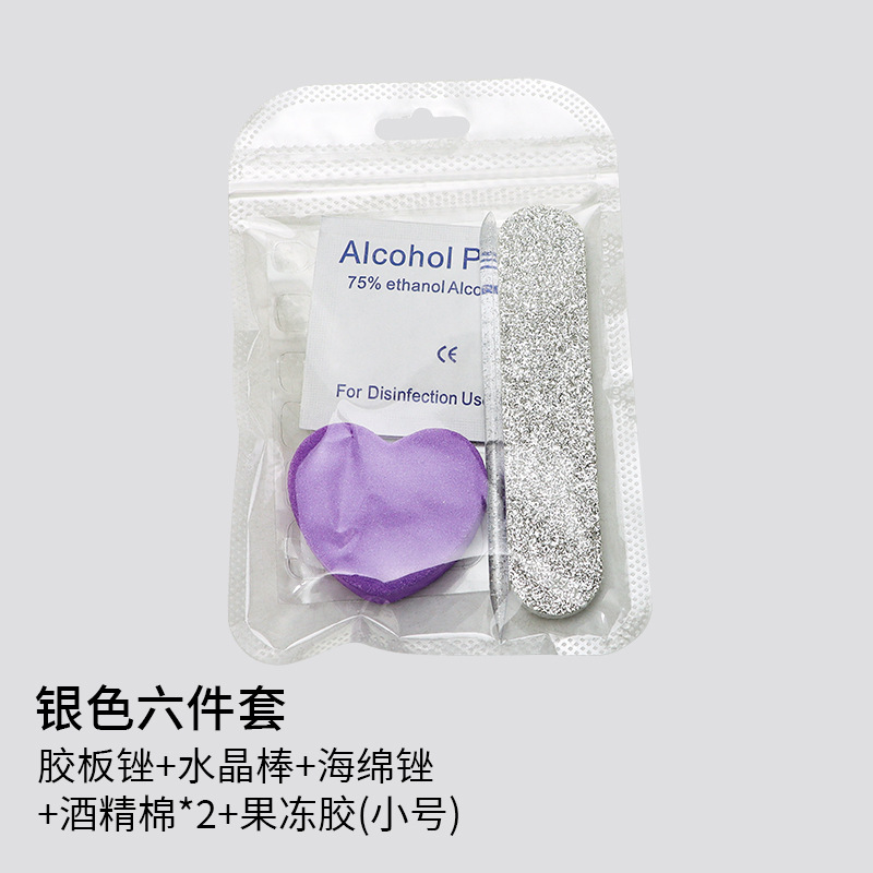 laser silver & white 6-piece set (polishing strip + crystal stick + heart-shaped sponge + small yellow glue + small size cotton cloth * 2