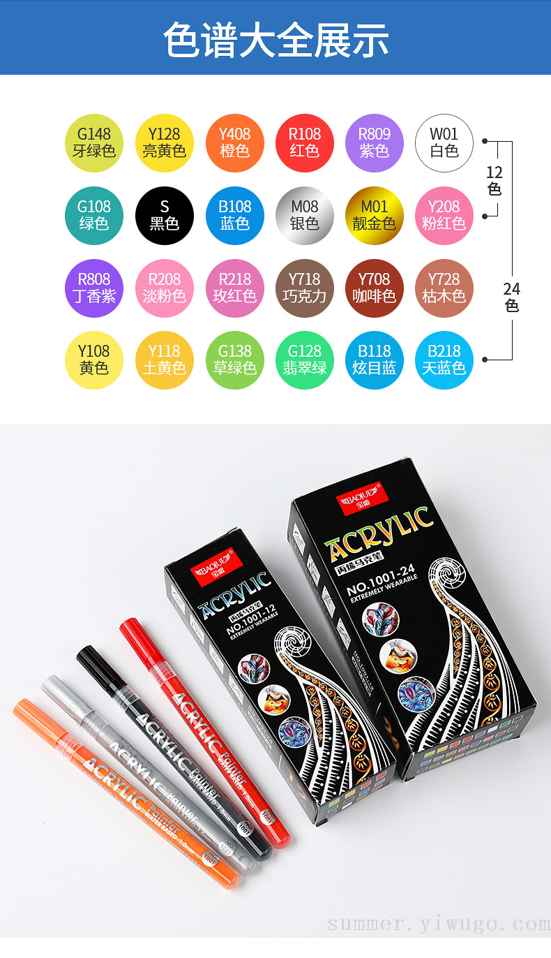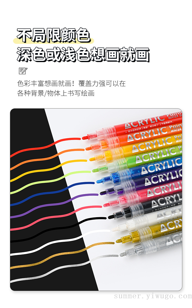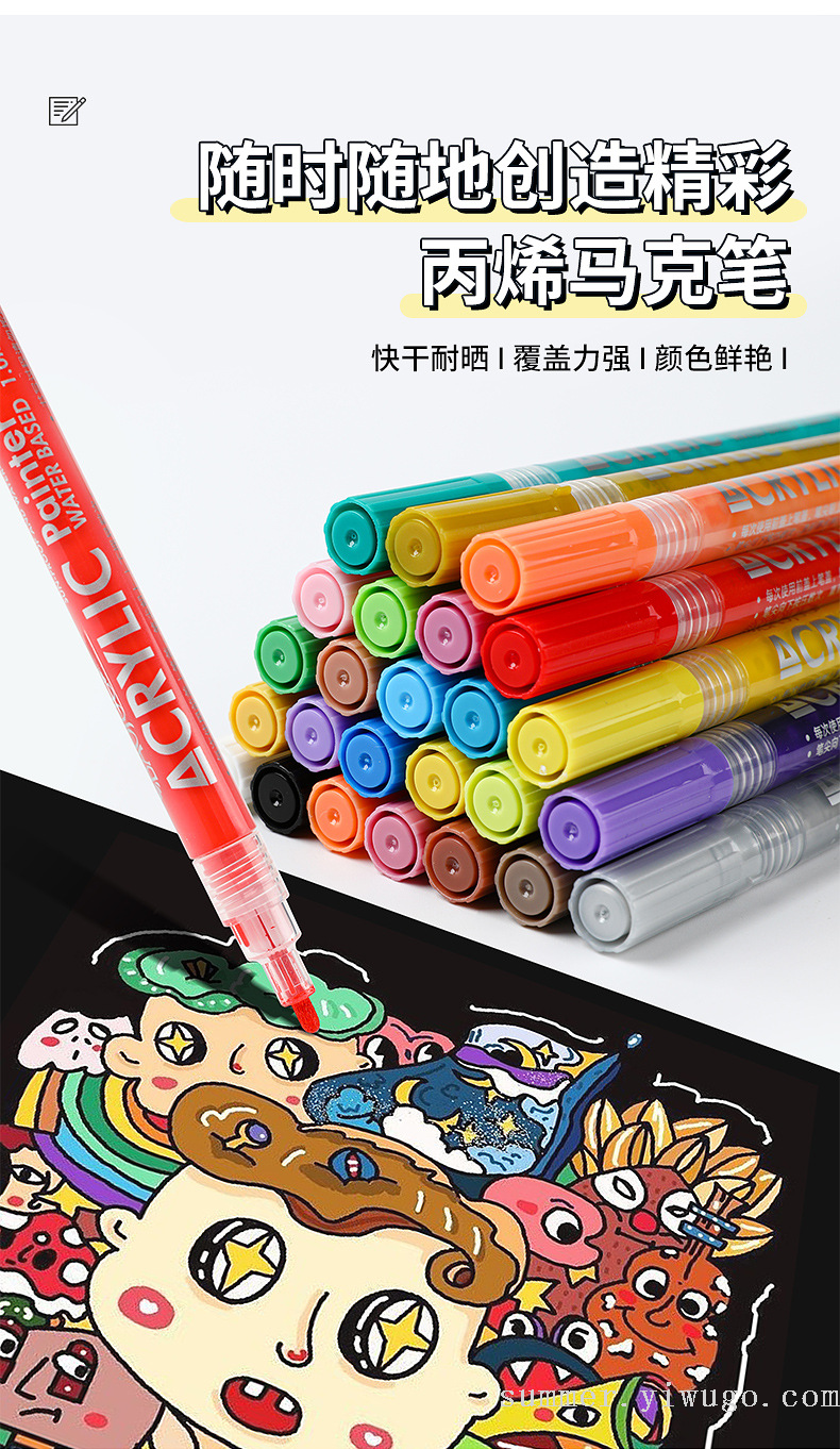 marking pen color acrylic marker pen ceramic watercolor pen cross-border hot acrylic brush water-based paint marker 中文版