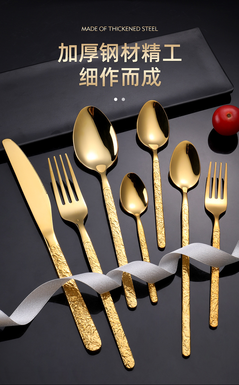 Wholesale creative relief Western tableware hotel retro steak knife fork spoon thickened imperial stainless steel knife fork spoon tableware