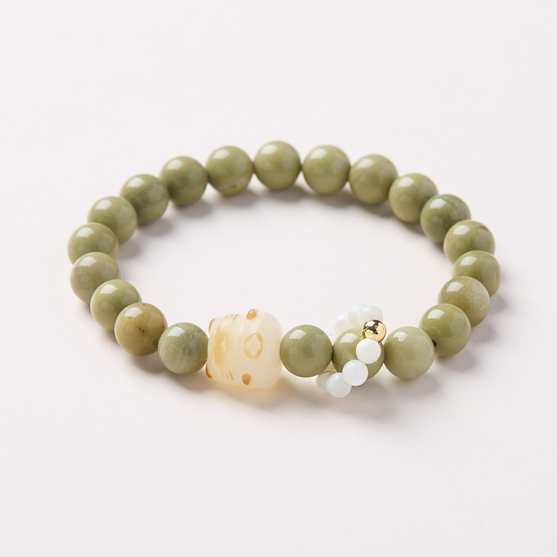 Name8mm Green Alashan Charcoal Burned Kitten White Butterfly Shell Running Ring Bracelet【Alashan】8mm green Alashan charcoal burning kitten white butterfly shell running ring bracelet