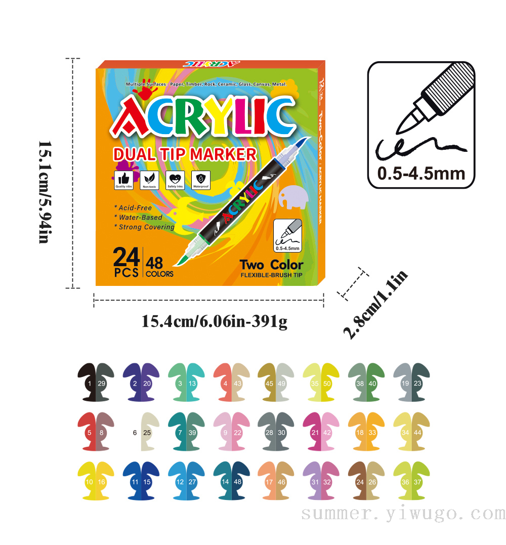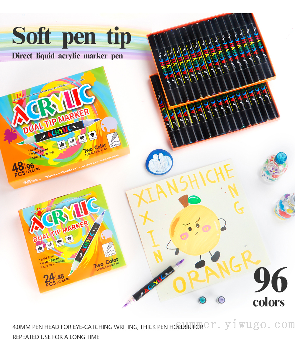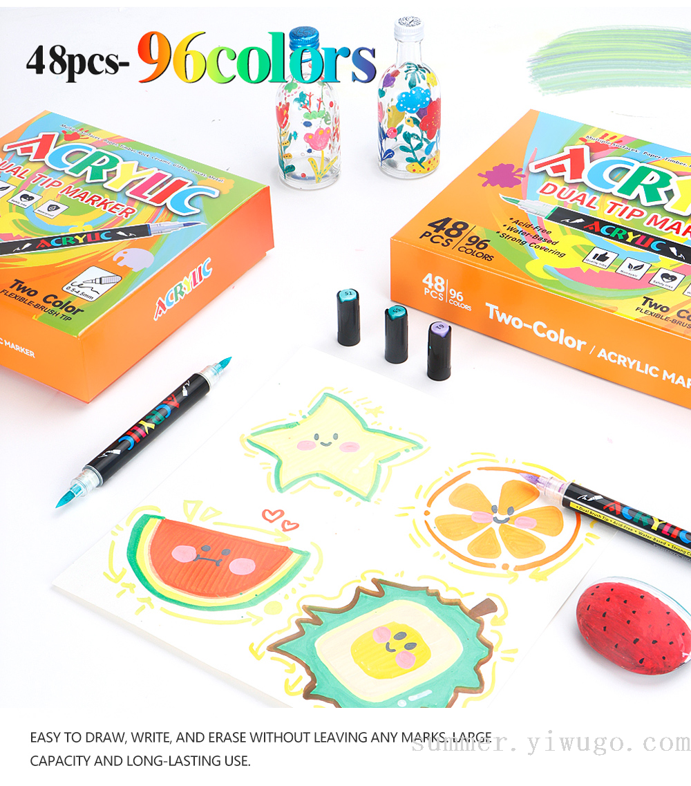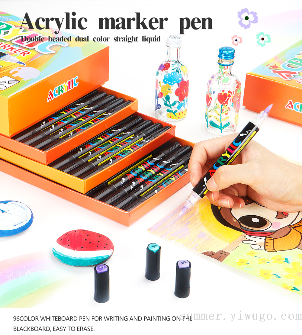 double-headed two-color straight liquid acrylic marker pen suit student art drawing pen painted graffiti pen suit wholesale 中文版