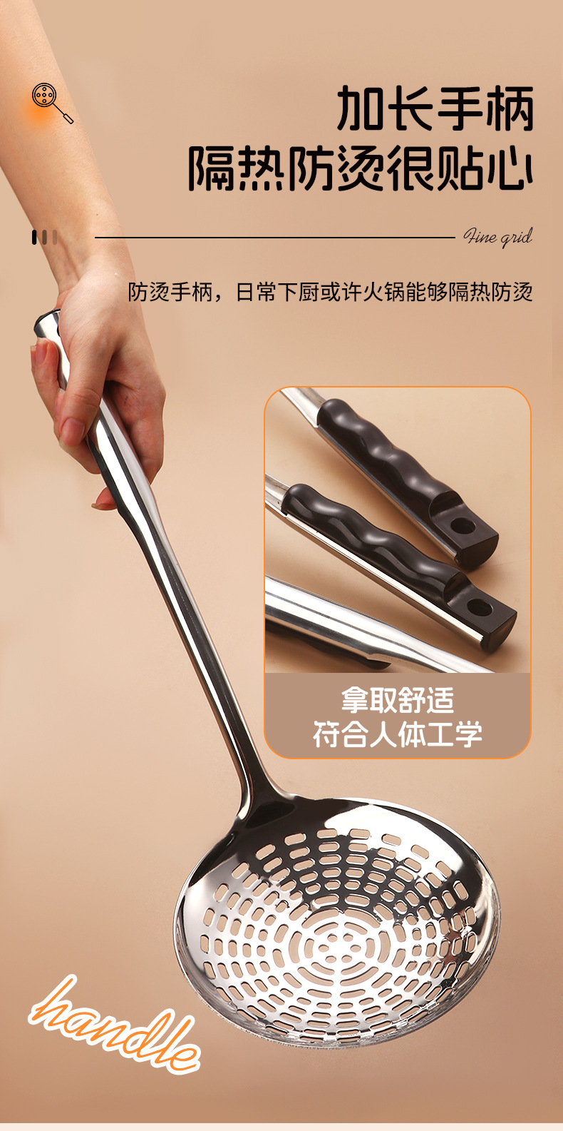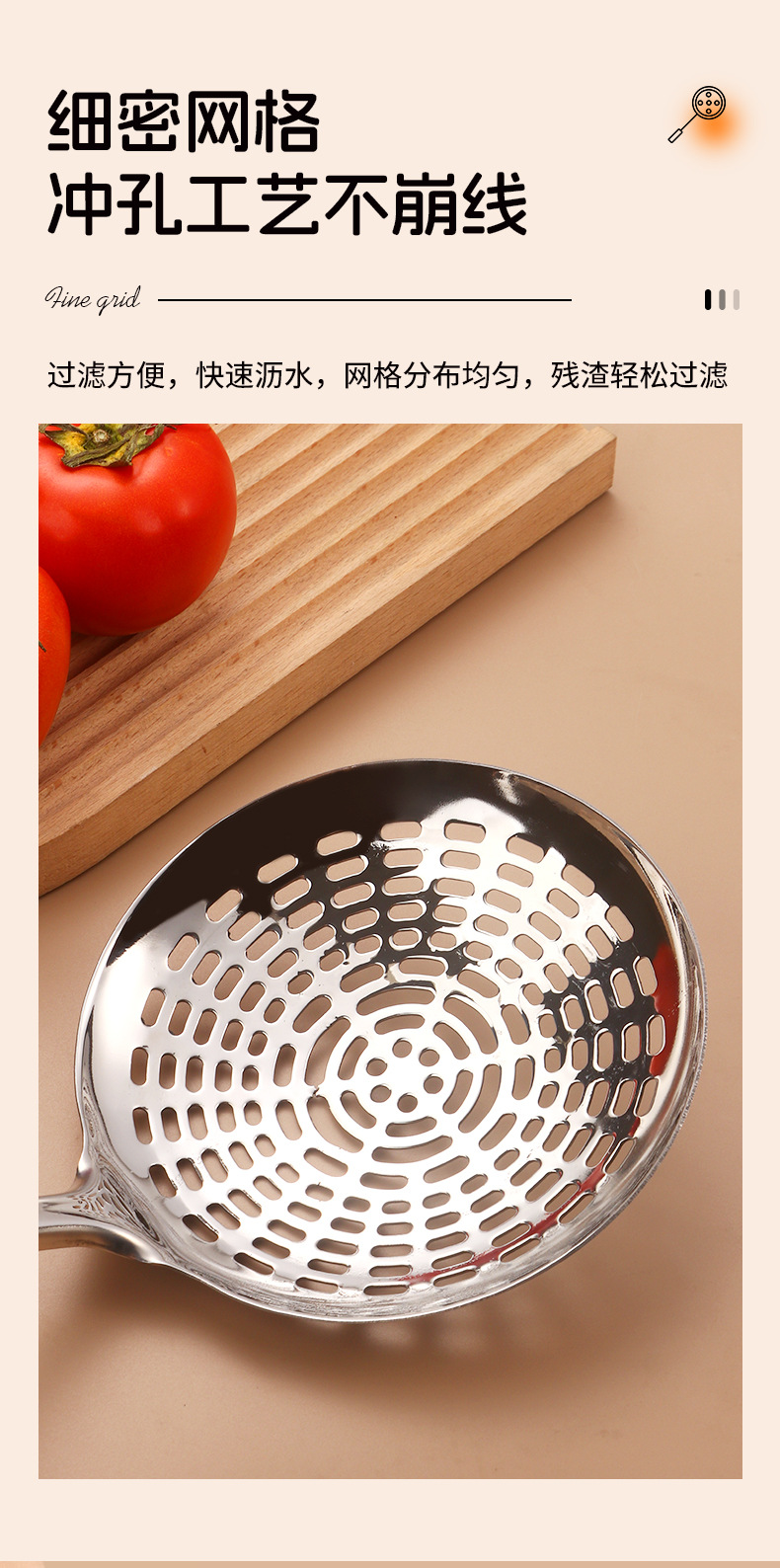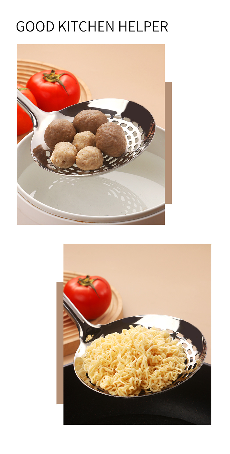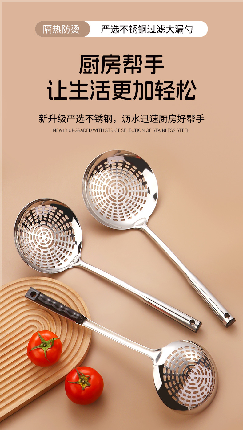 stainless steel colander strainer pasta spoon thickened household soup spoon strainer deep frying spoon dumpling kitchen tools wholesale 中文版