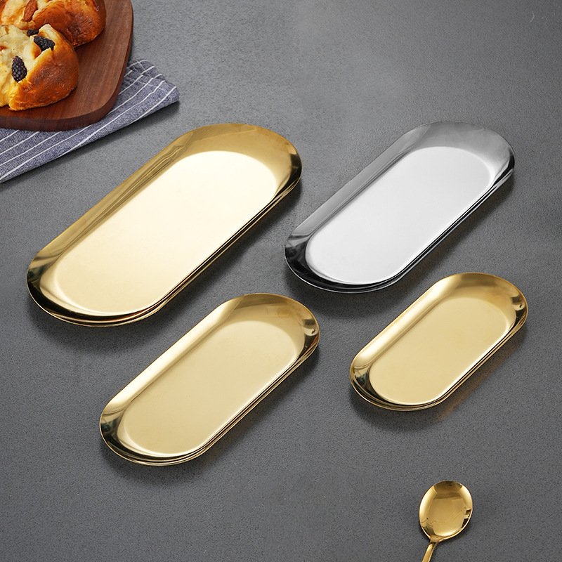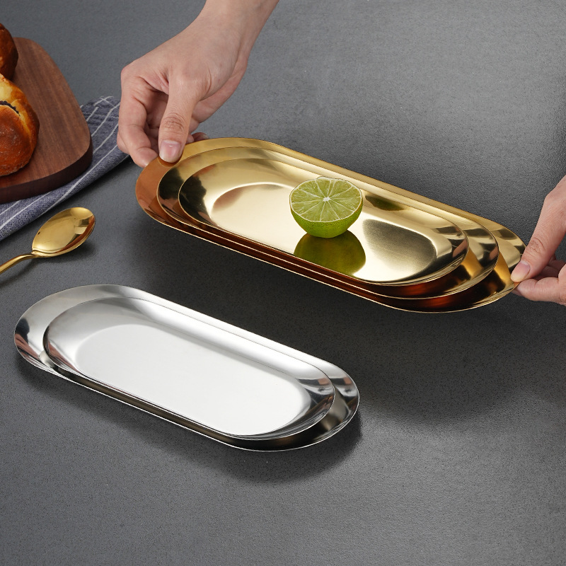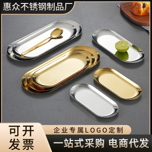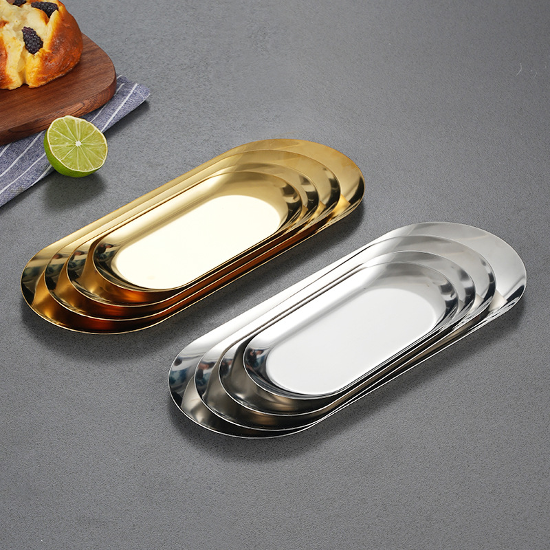 stainless steel oval barbecue plate restaurant golden pastry plate western food decoration towel tray multi-purpose oval disk 中文版