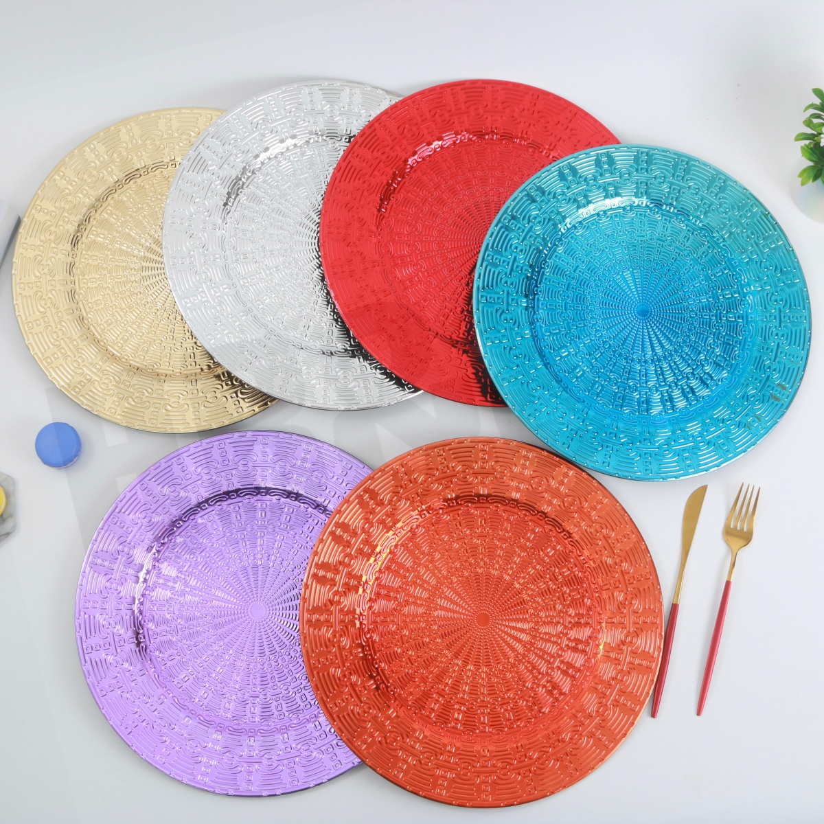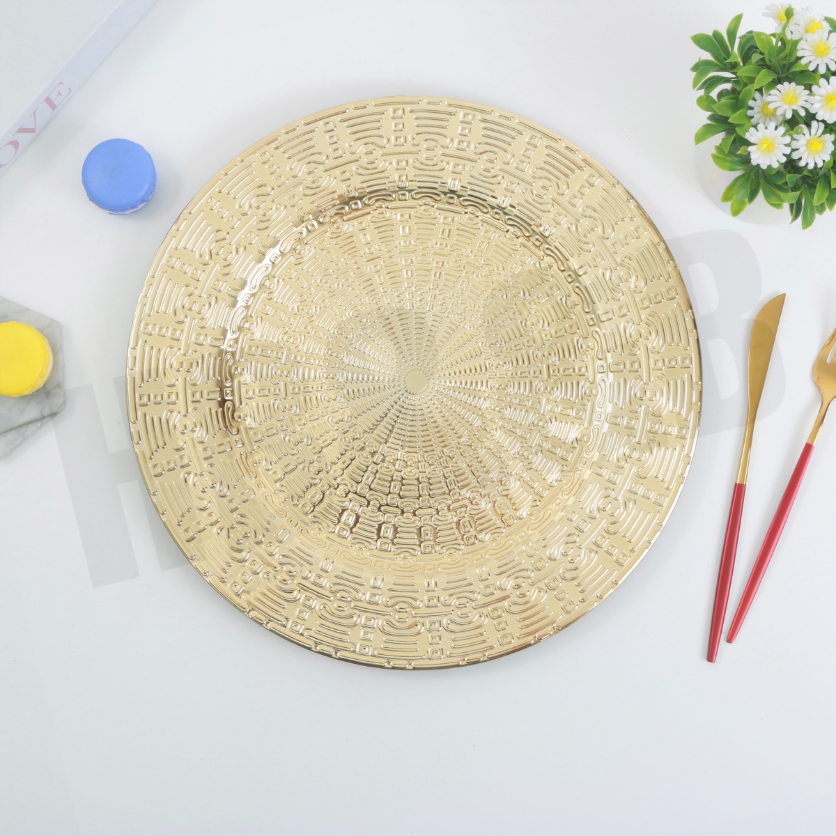 new european plate hotel wedding banquet placemat plate plastic tray electroplating craft plate decorative tray embossed tray 中文版