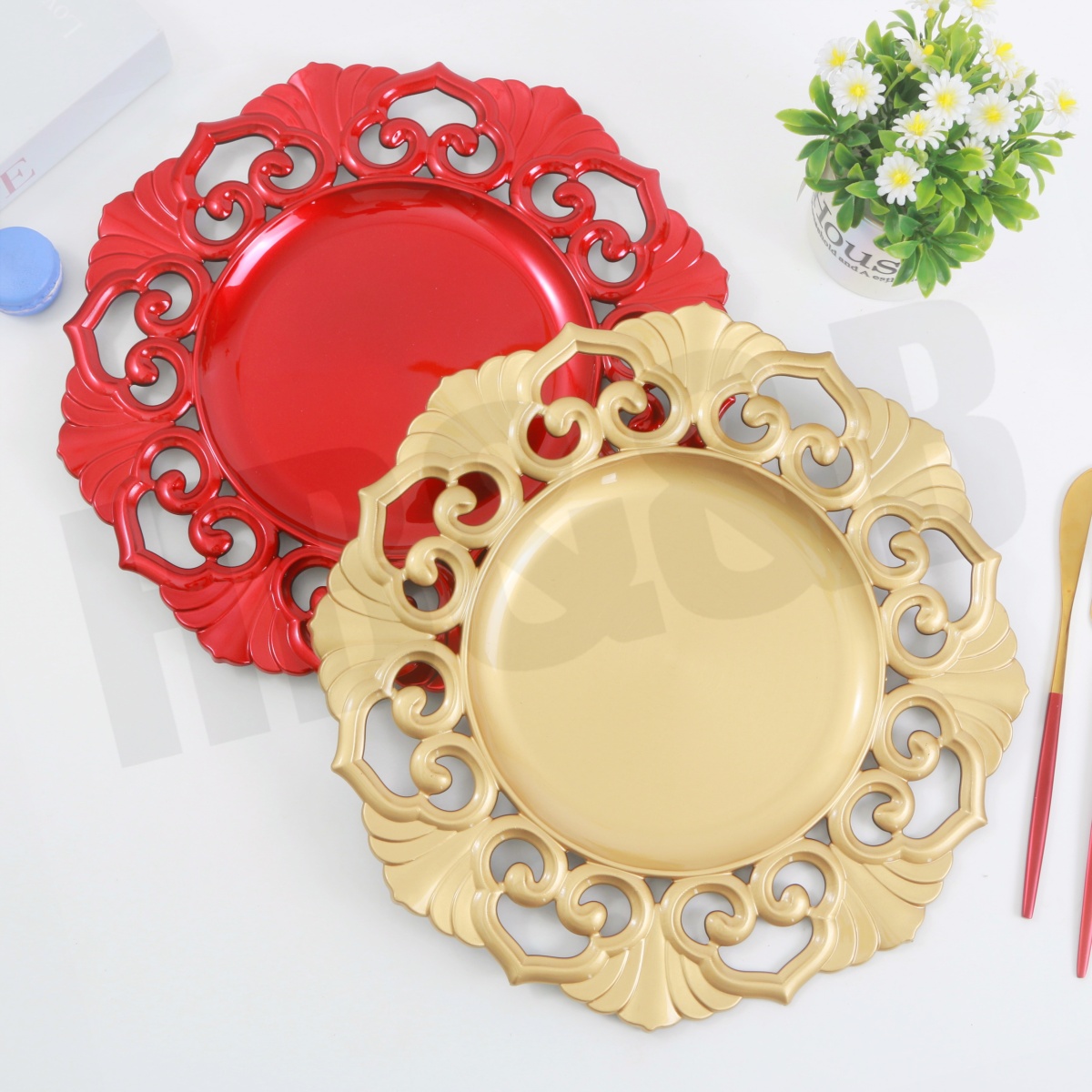 nordic creative plate retro style christmas plate exquisite hollow-out placemat plate hotel wedding plastic tray 中文版