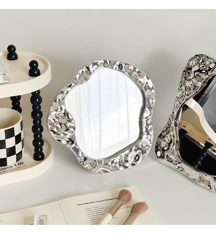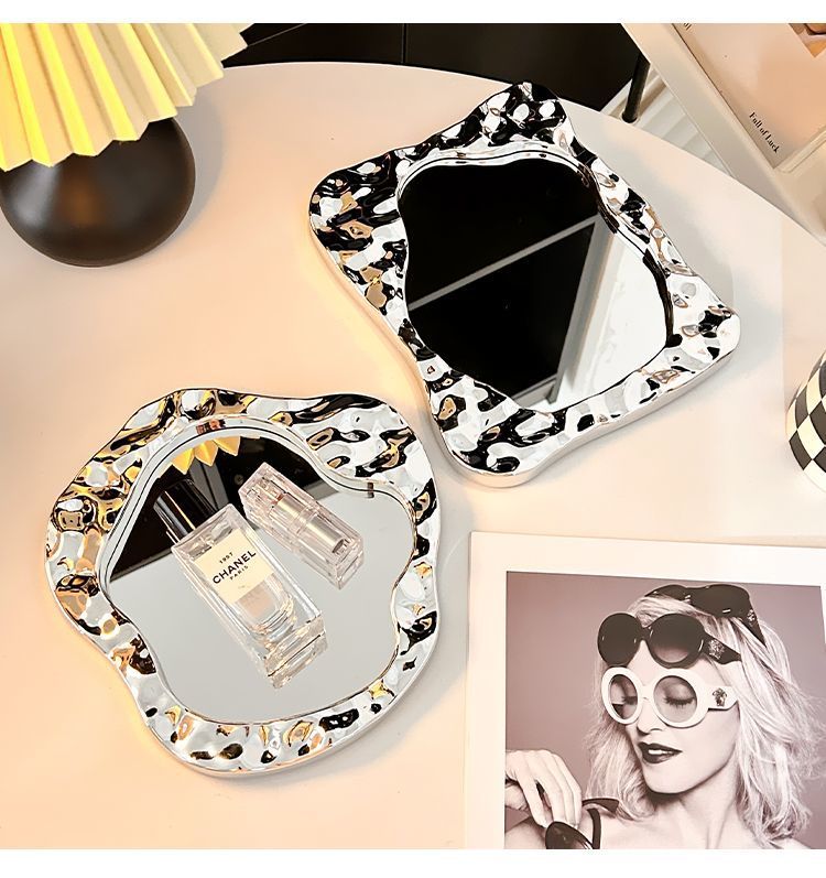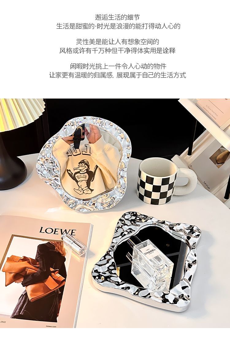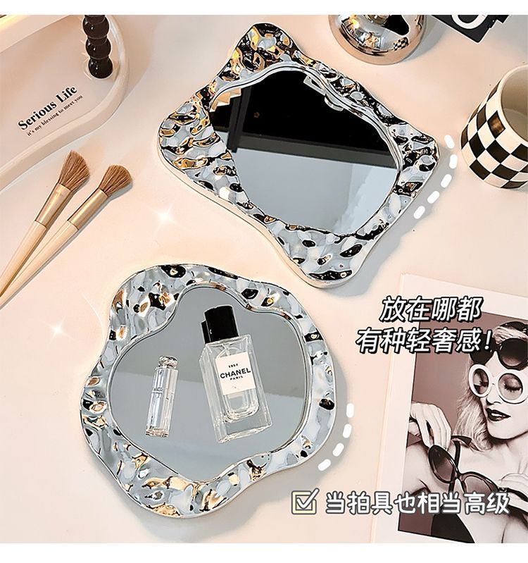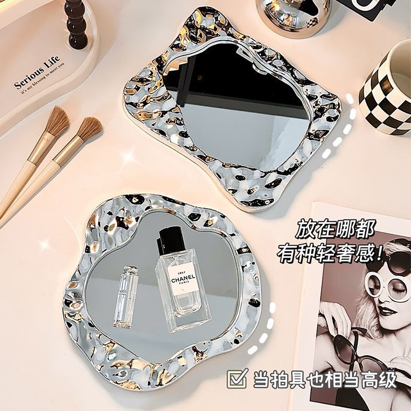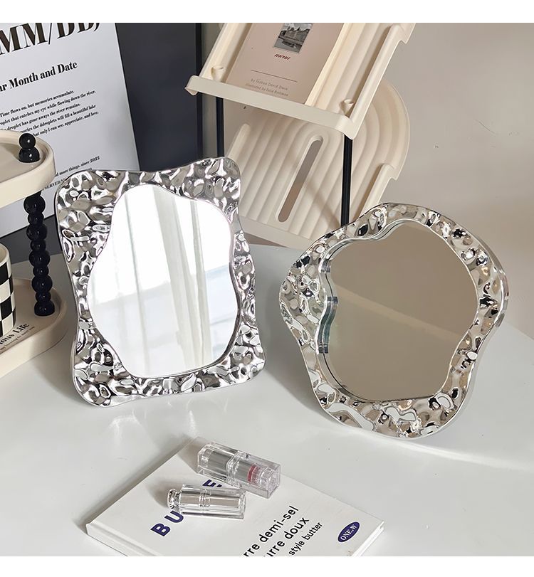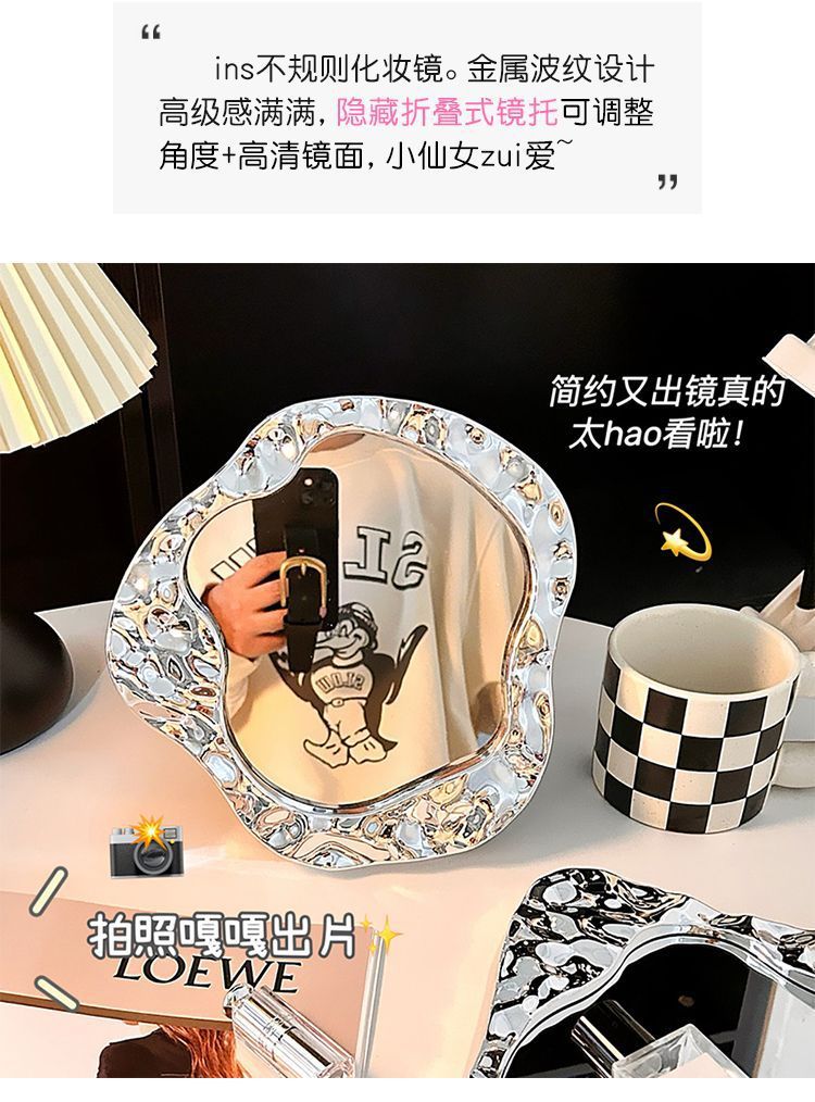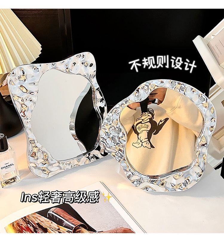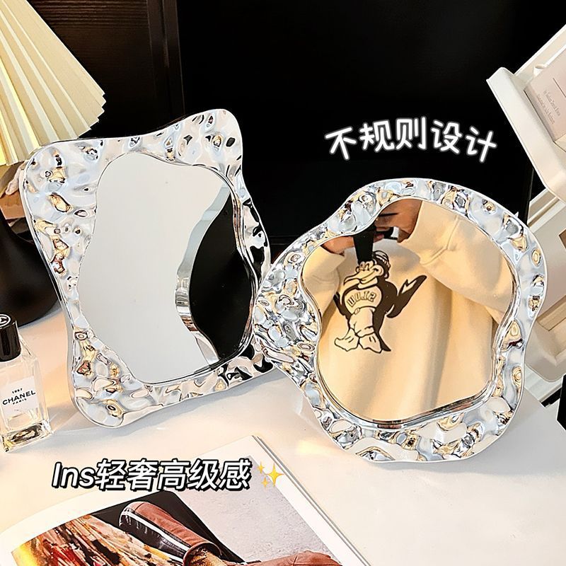 makeup mirror desktop small mirror office household portable portable student dormitory simple folding dressing mirror 中文版