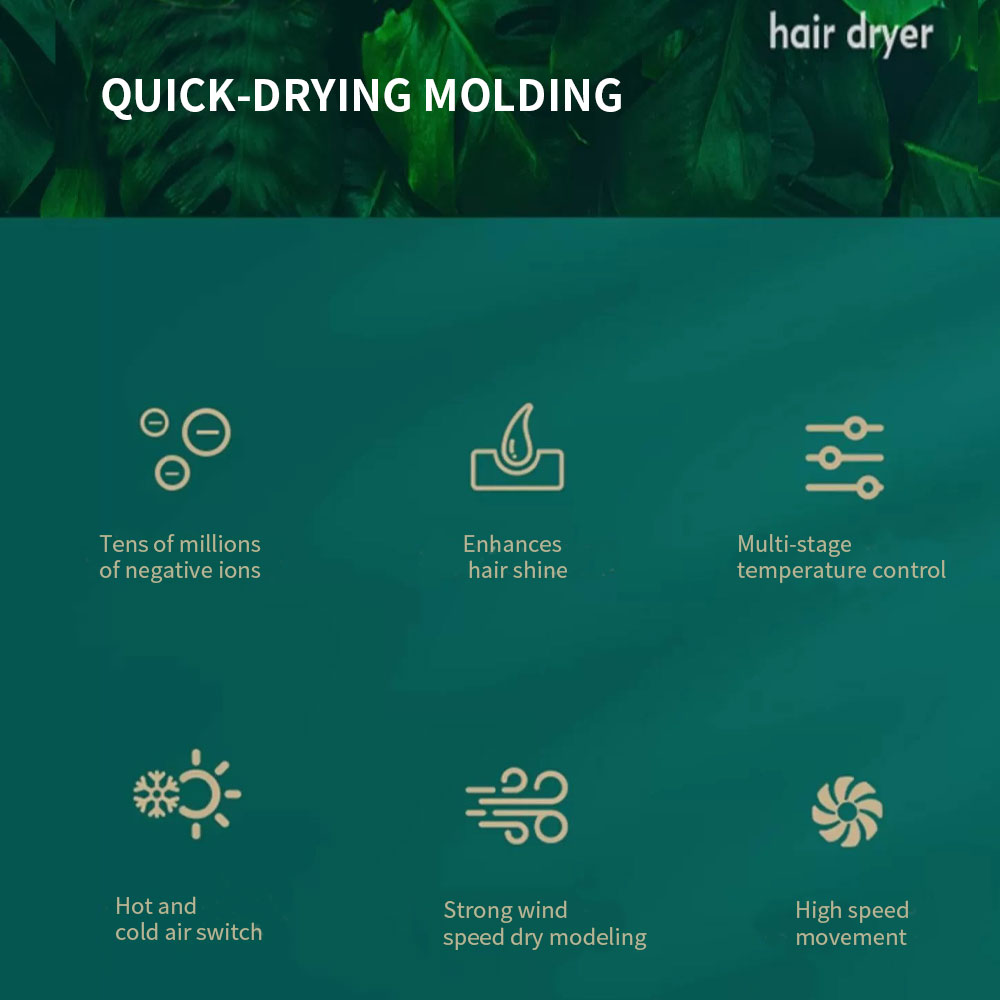 [quick hair drying] using 1800w high power, with intelligent temperature control technology, quick hair drying does not hurt hair, and solves the time-consuming pain point of traditional hair dryers. [silent design] low noise operation, use at night without disturbing people. voltage: 110v-220v frequency: 50/60hz power: 1800w box size: 13*29.5*9.5 box gauge: 53.5*49*61 gross weight: 16.2 net weight: 15.1