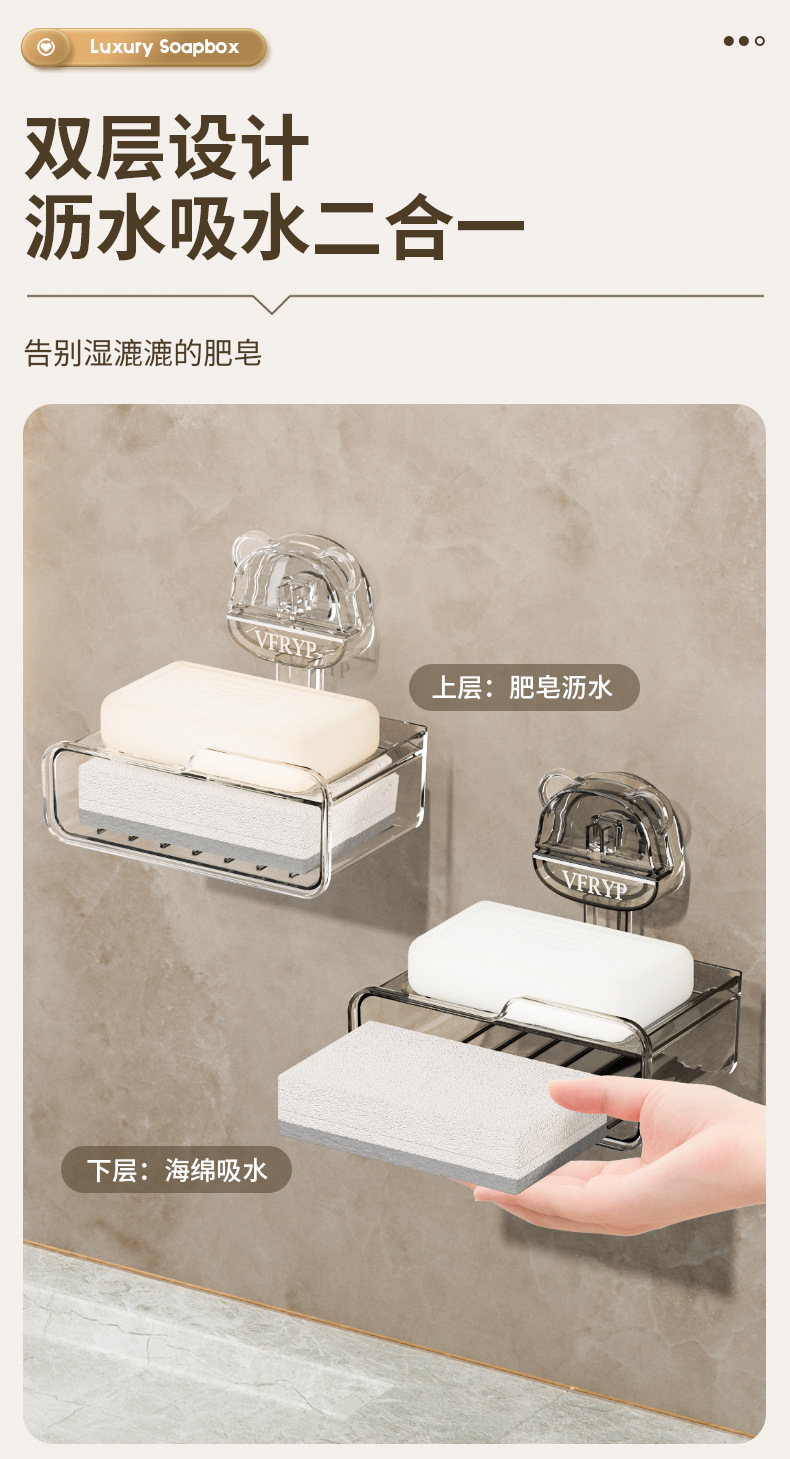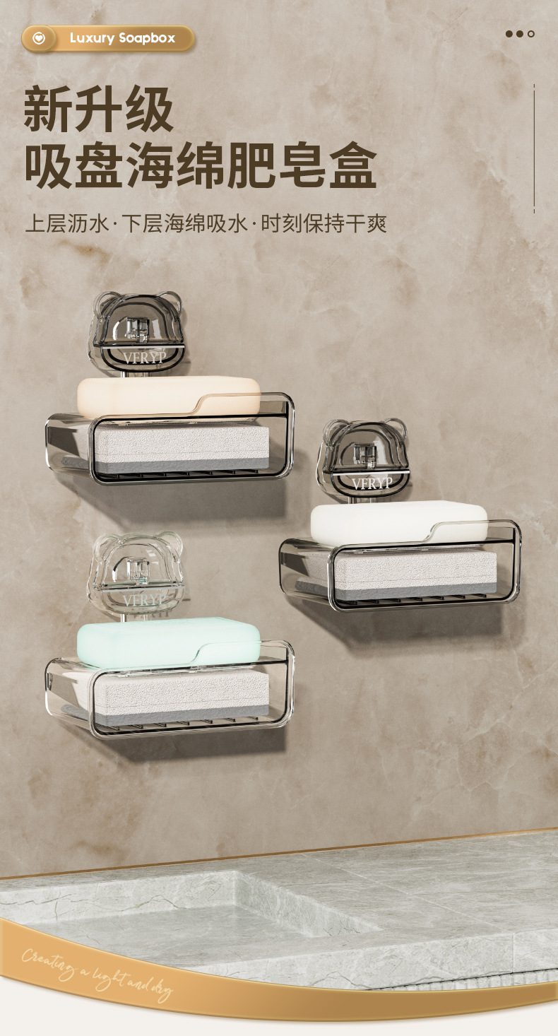 sucker soap box-transparent gray silver 1 pack [with sponge]]