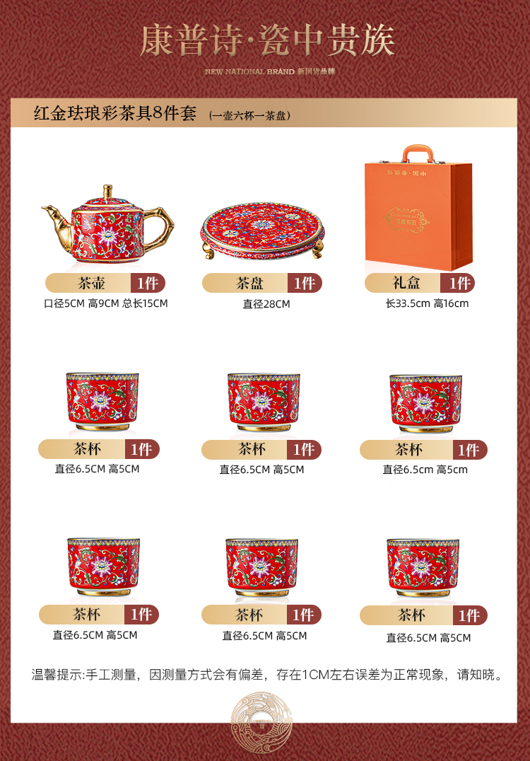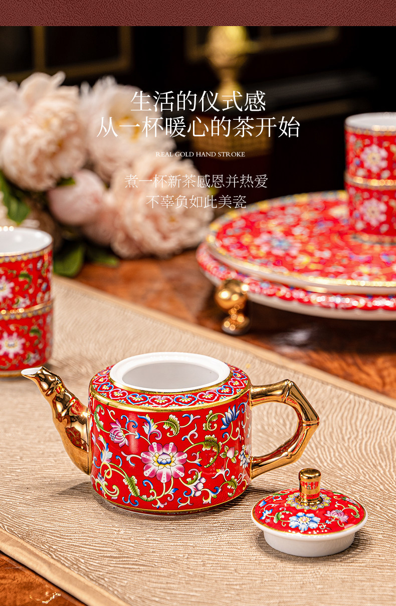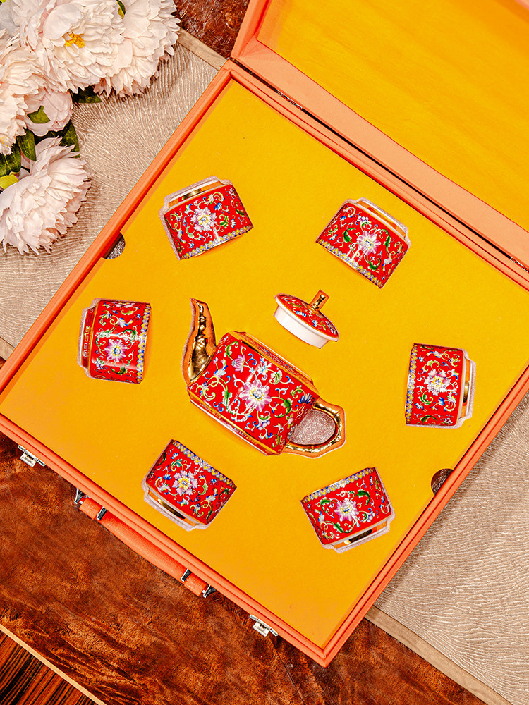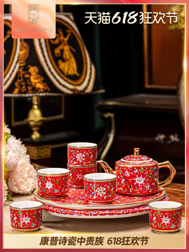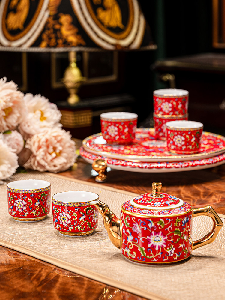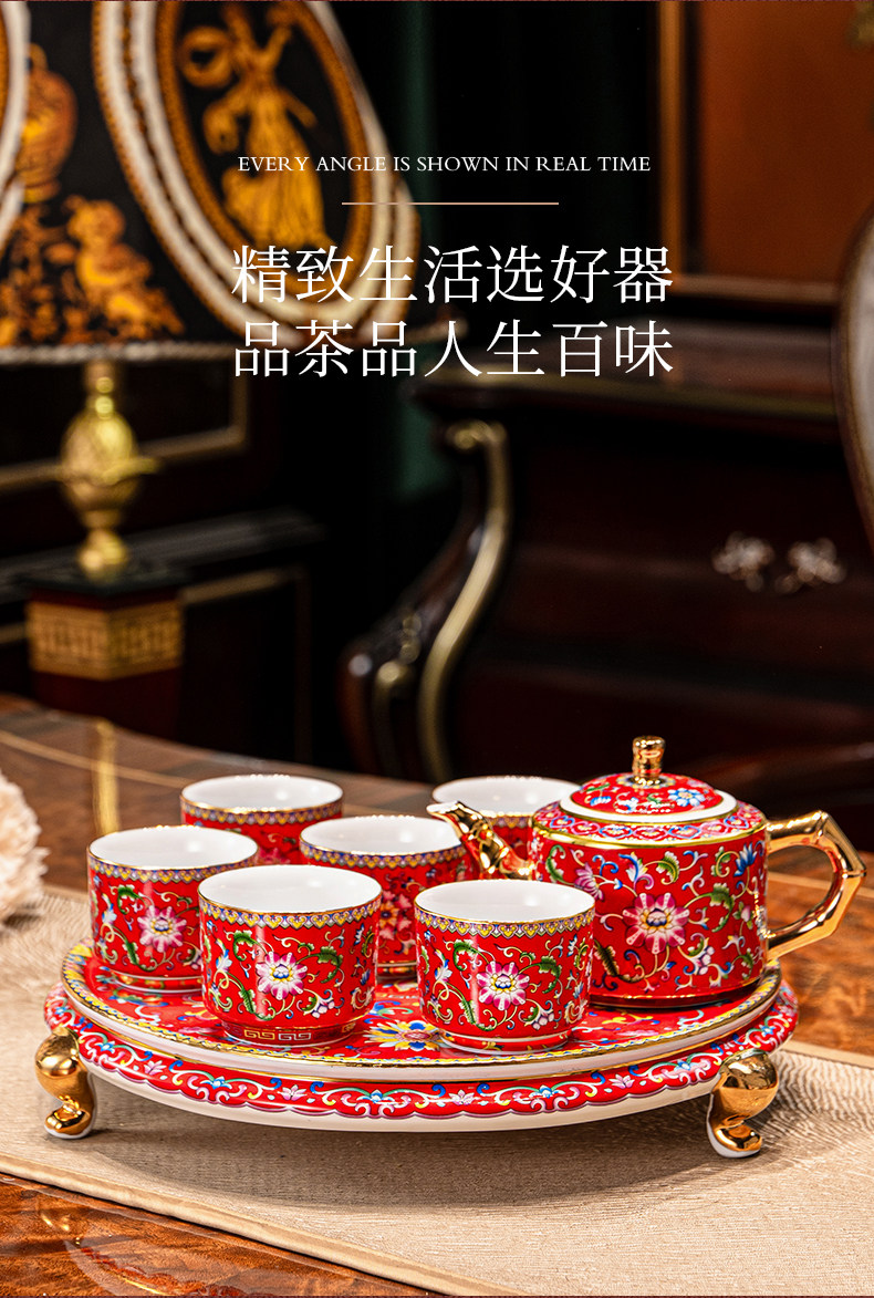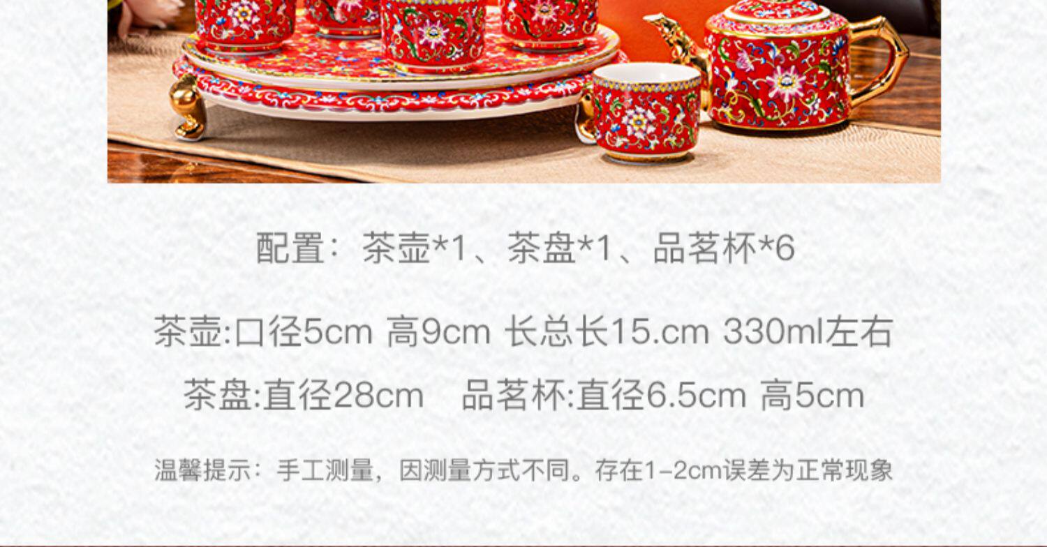 hongjin enamel tea set 8-piece set a plate of six cups per pot