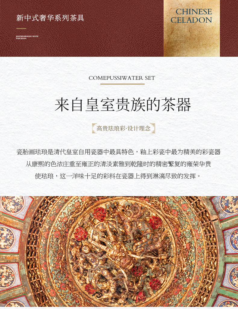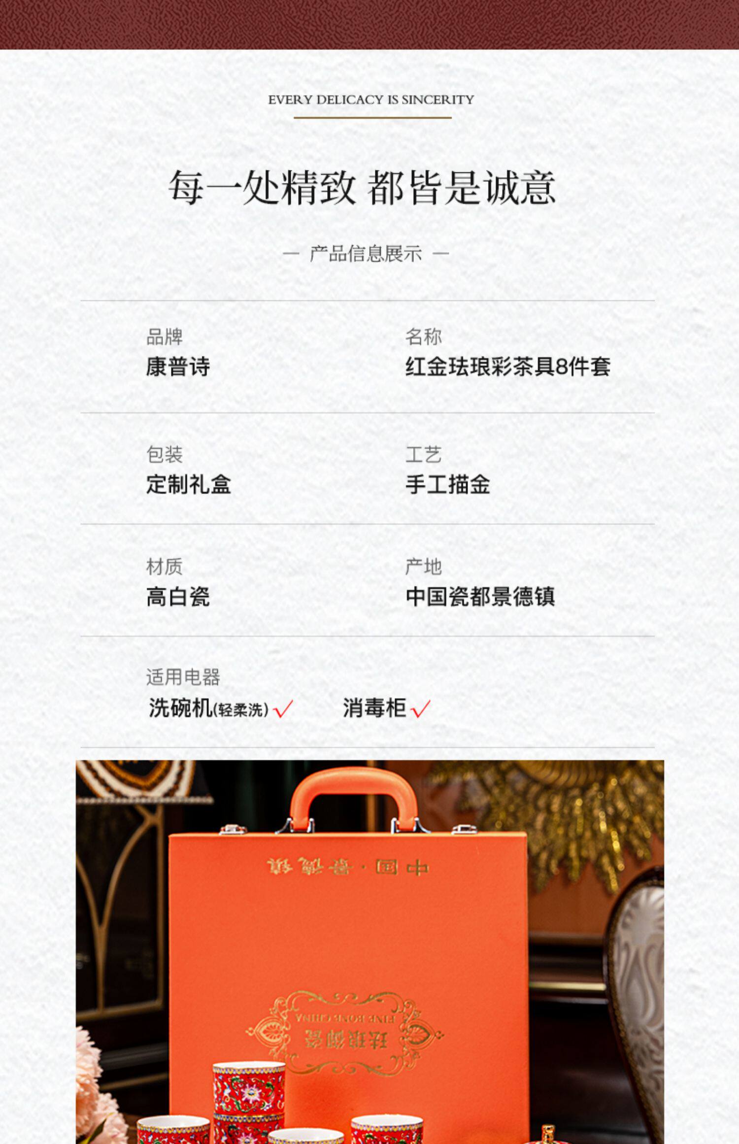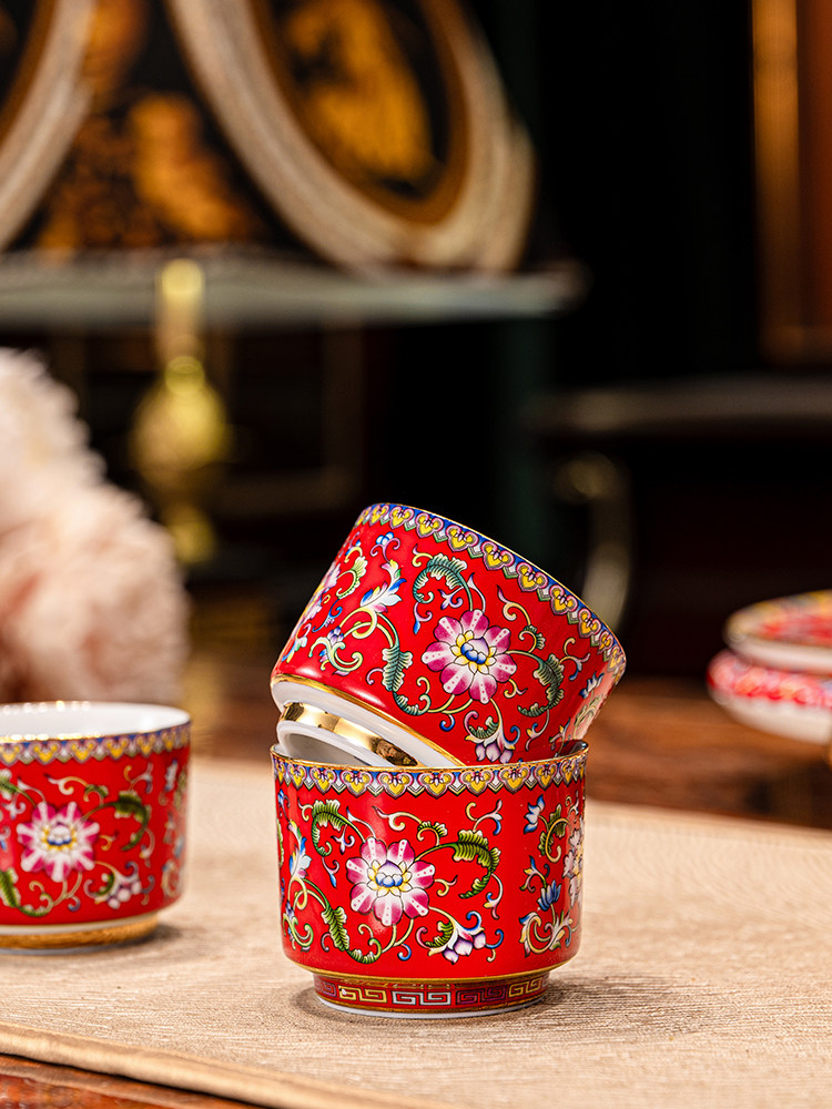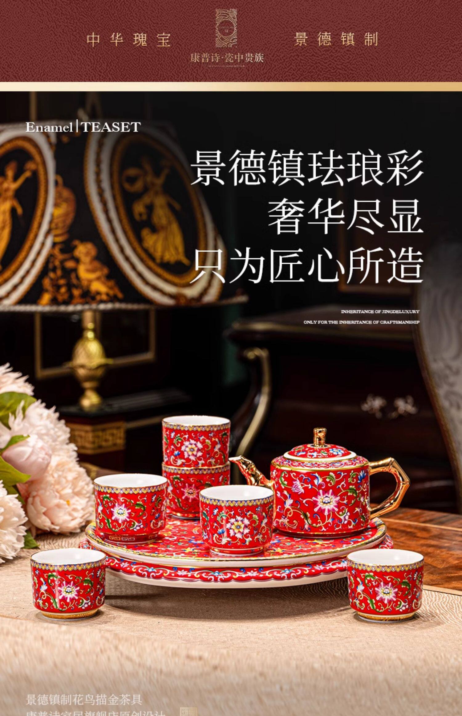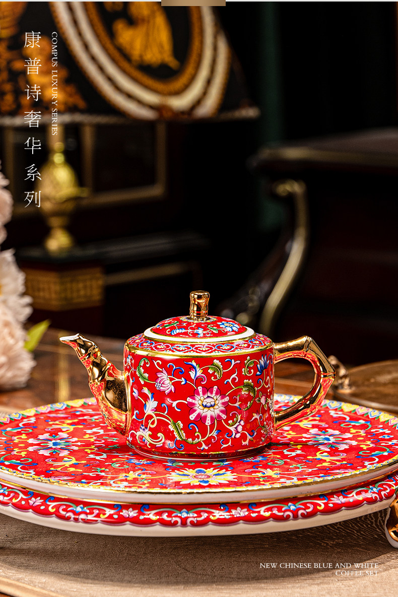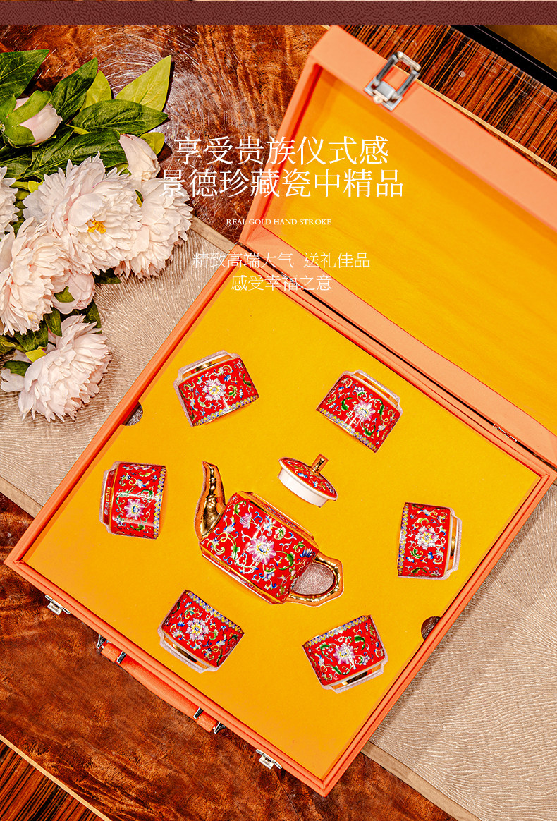 hongjin enamel tea set 8-piece set a plate of six cups per pot