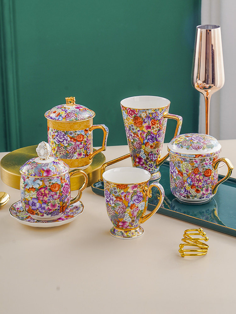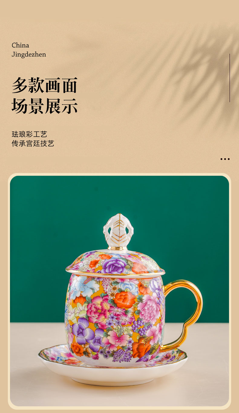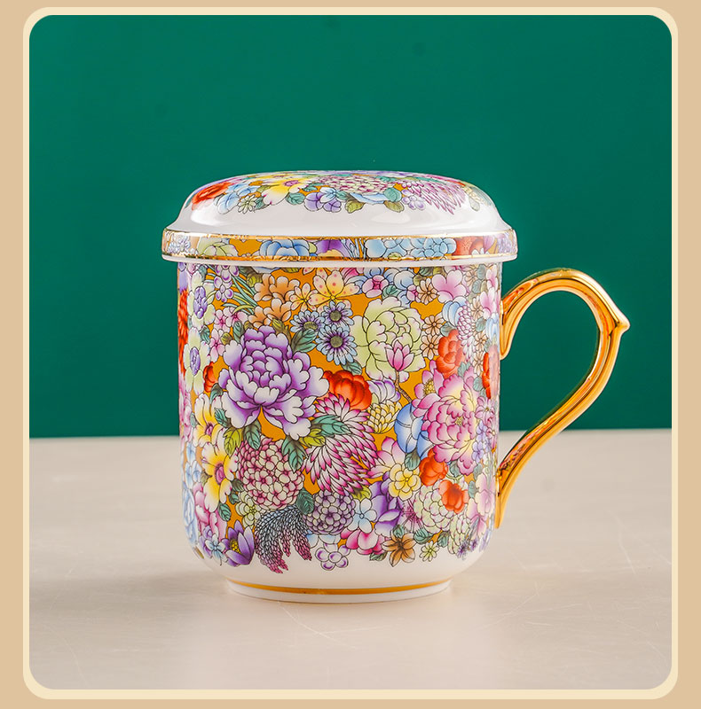 jinwan flower strap tea strainer conference cup [three-piece set] 450ml