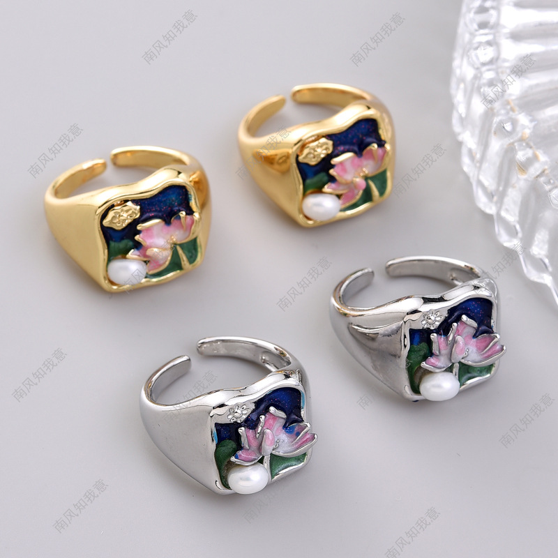 #1188 white gold color lotus open ring a piece
