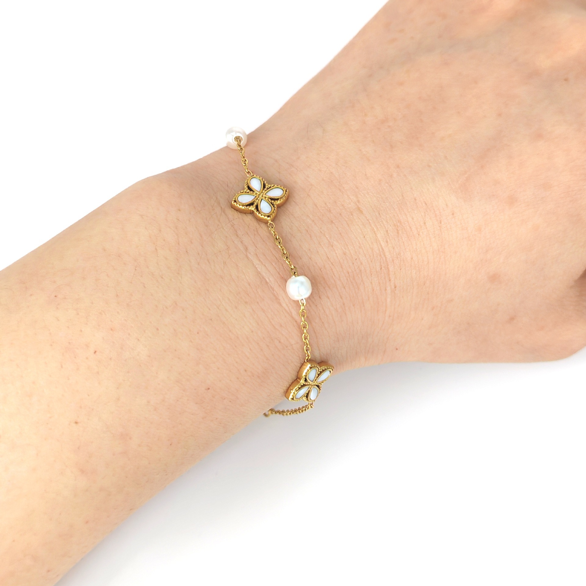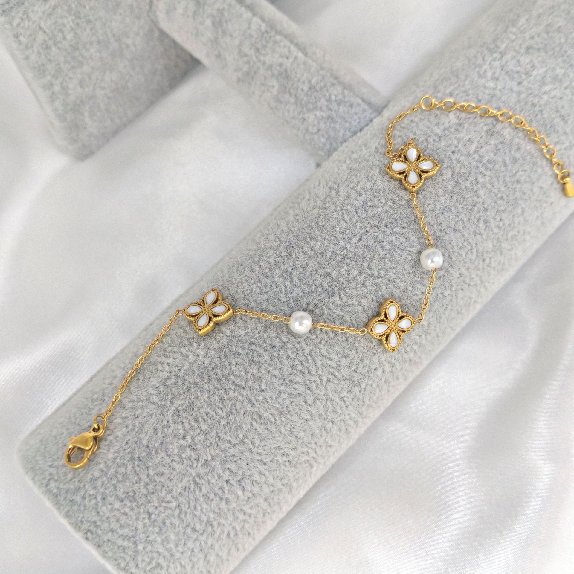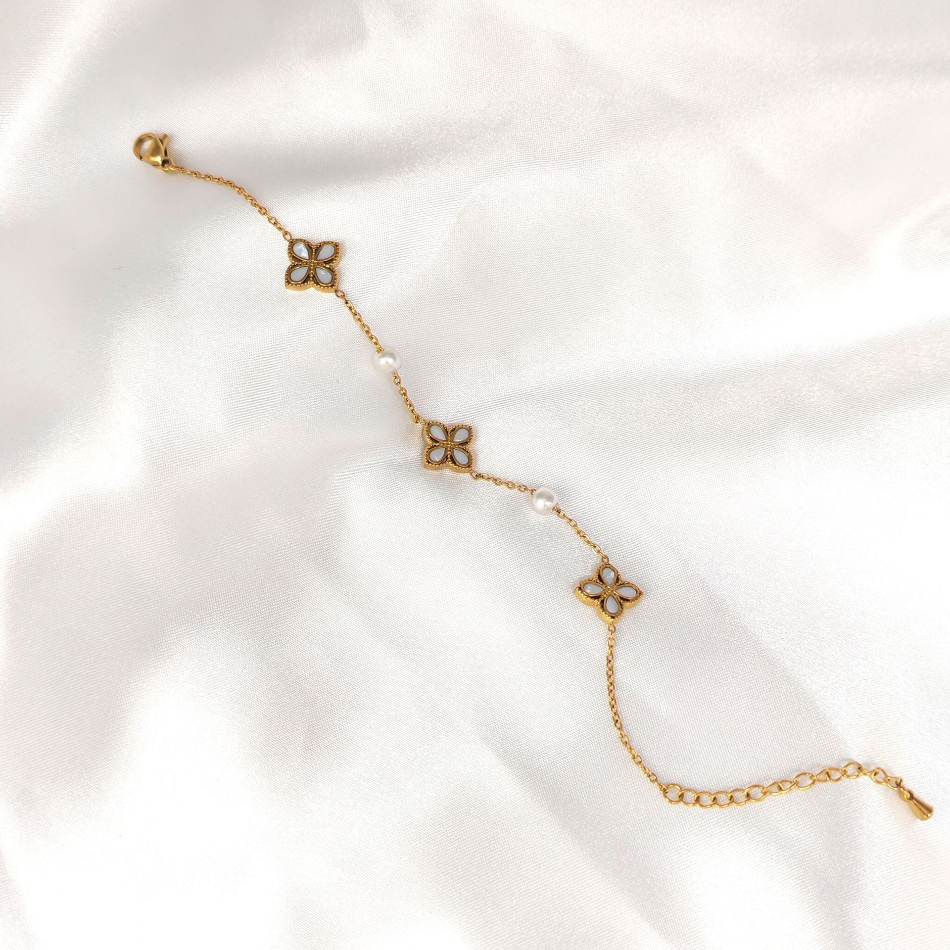 电镀高级感手链镶嵌锆石四叶花草手链时尚简约百搭厂家供应