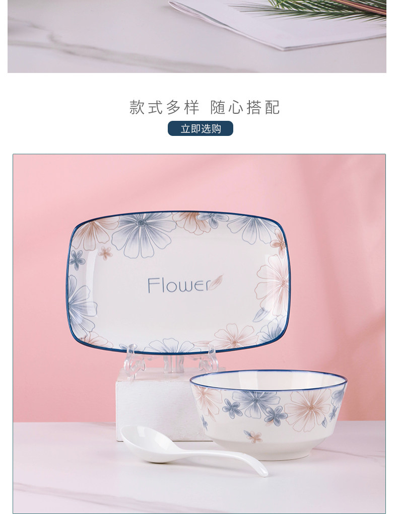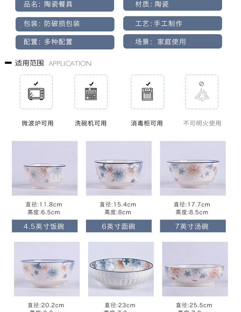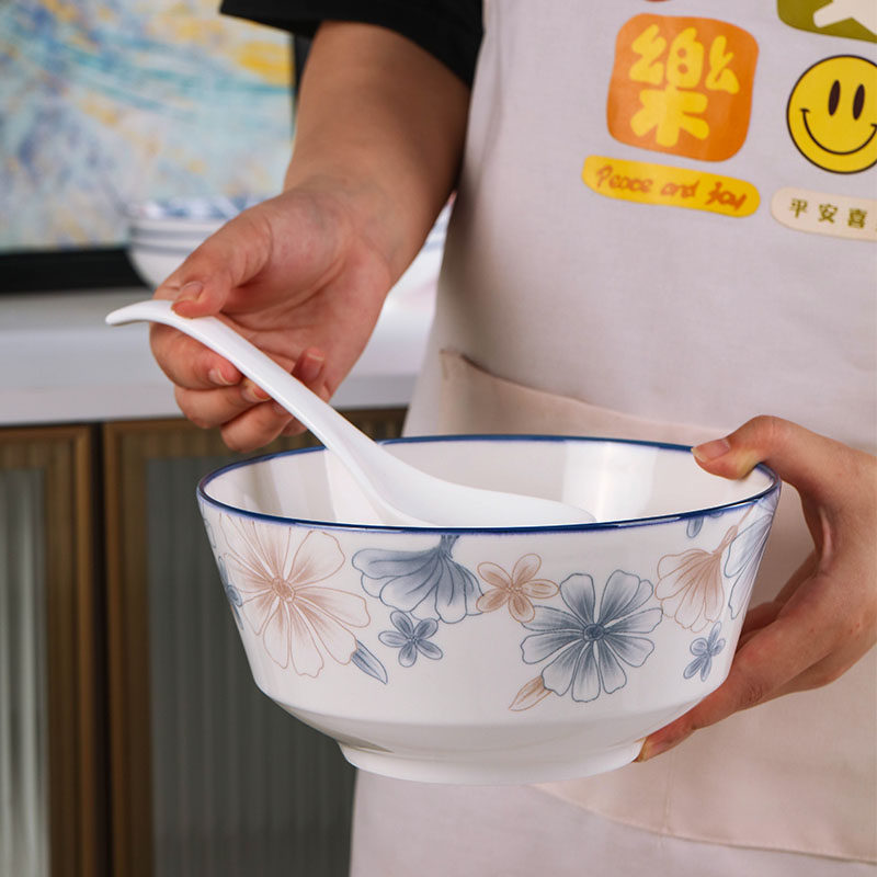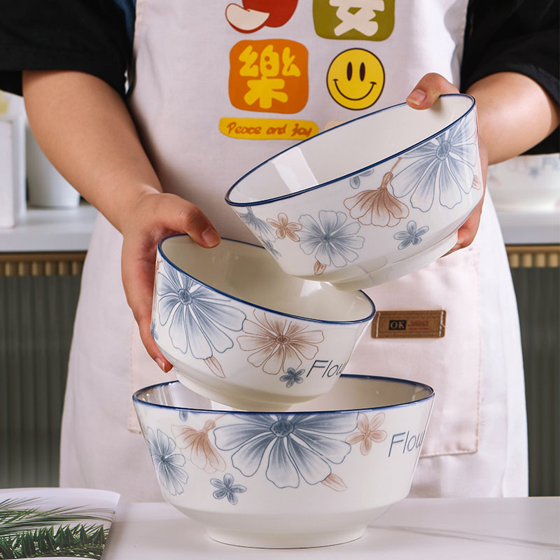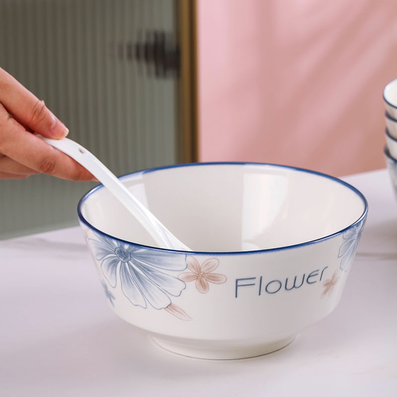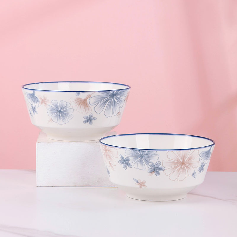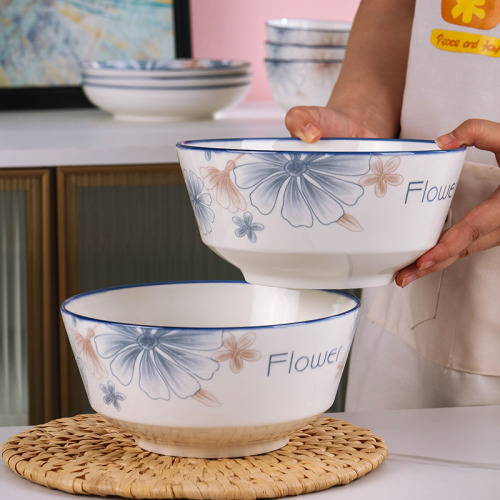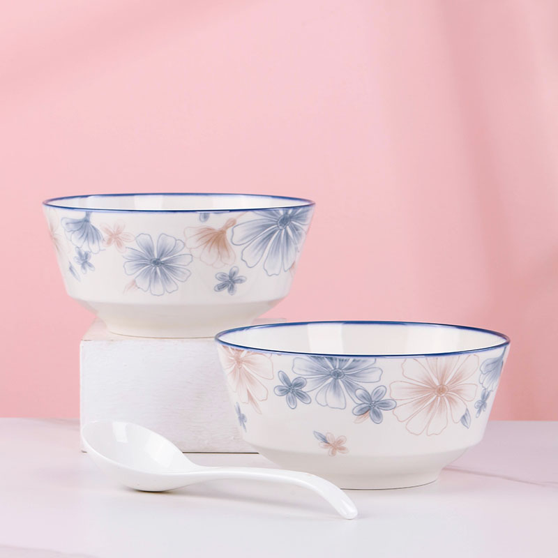 6-inch european style noodle bowl 1 blue brown big flower