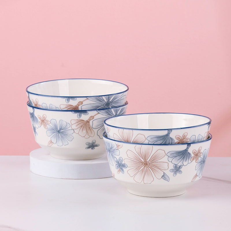 6-inch european style noodle bowl 4 blue and brown flowers
