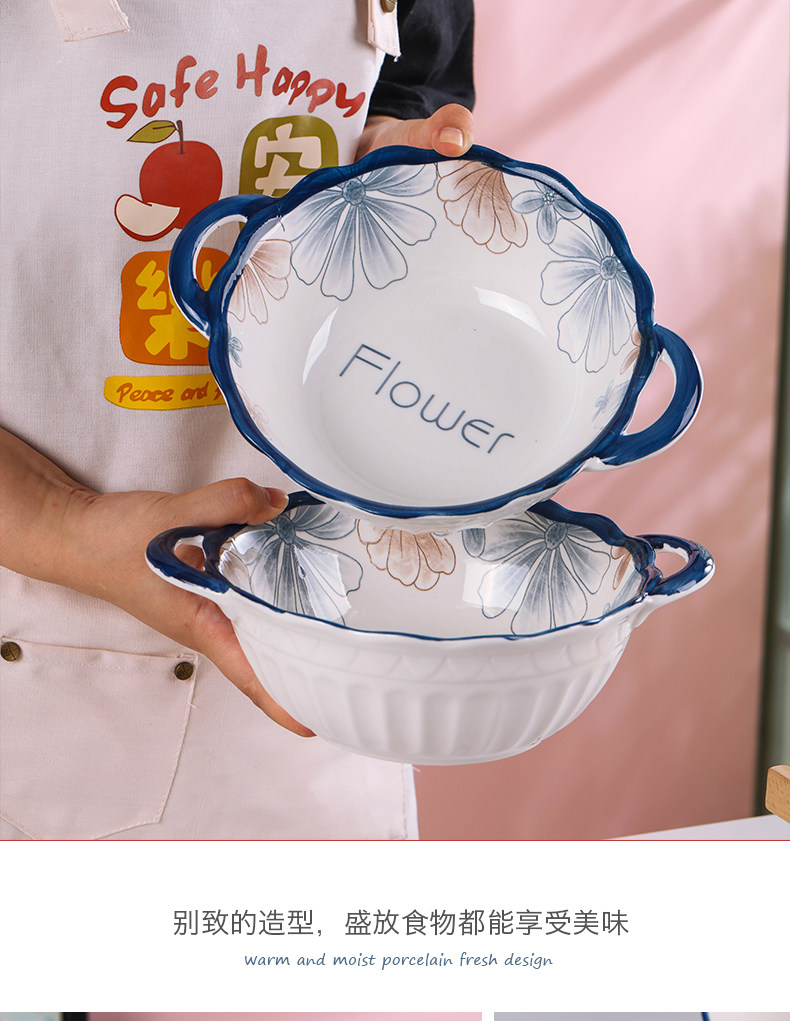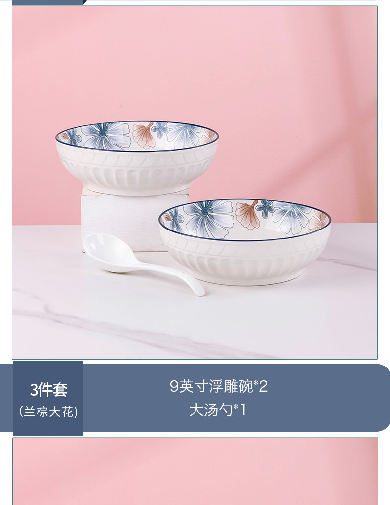 8-inch european soup bowl 3 pcs blue brown big flower