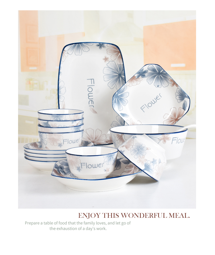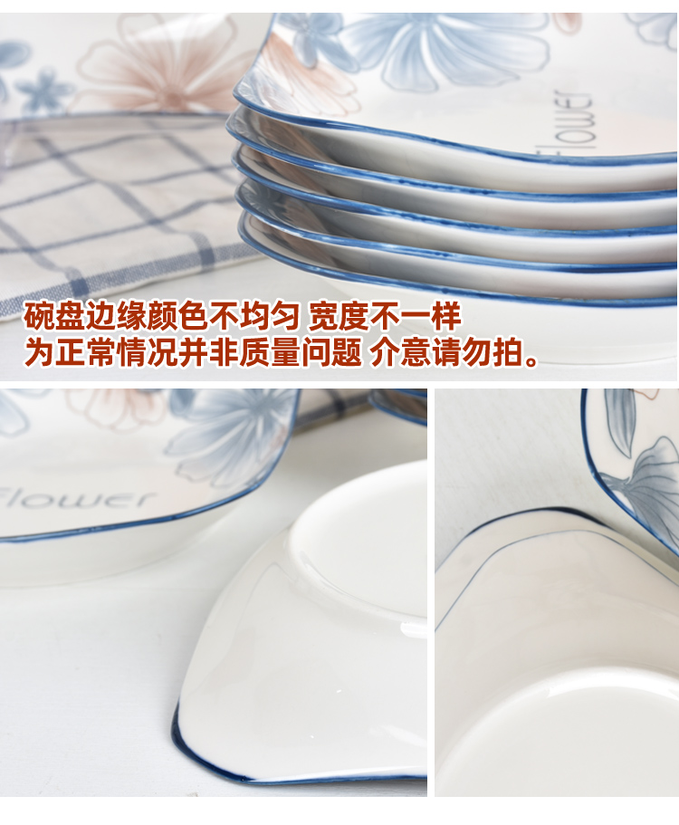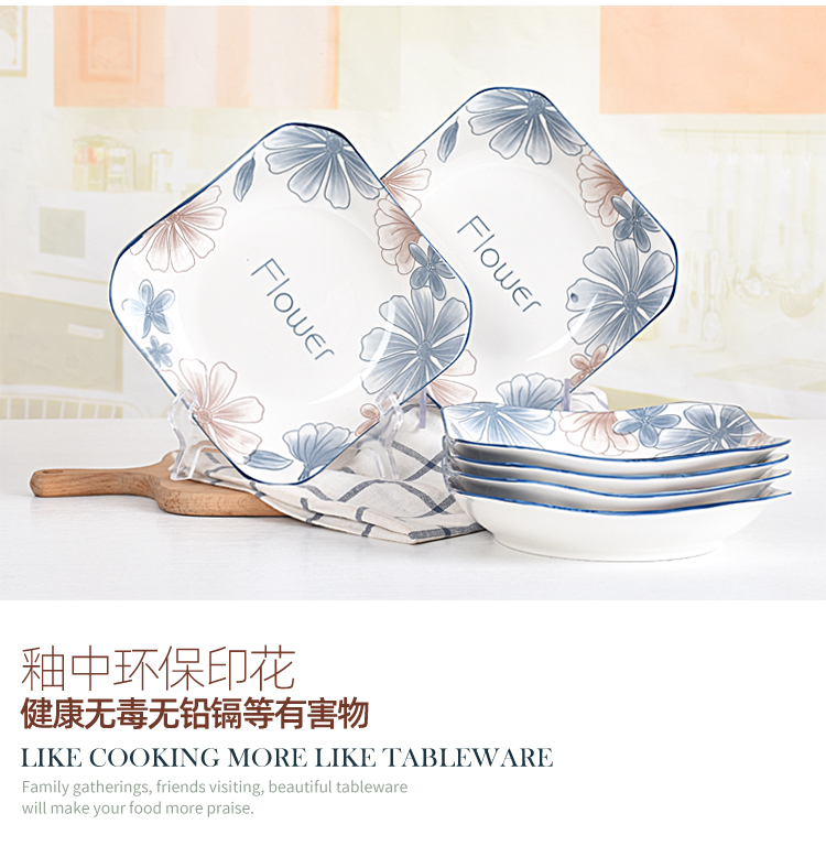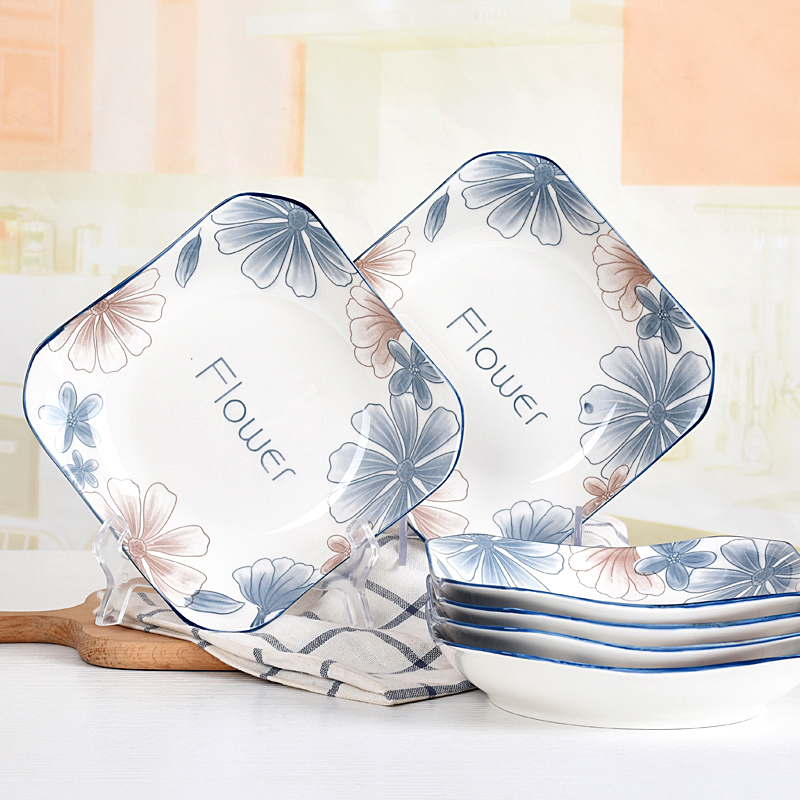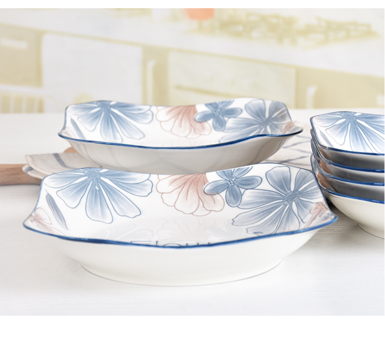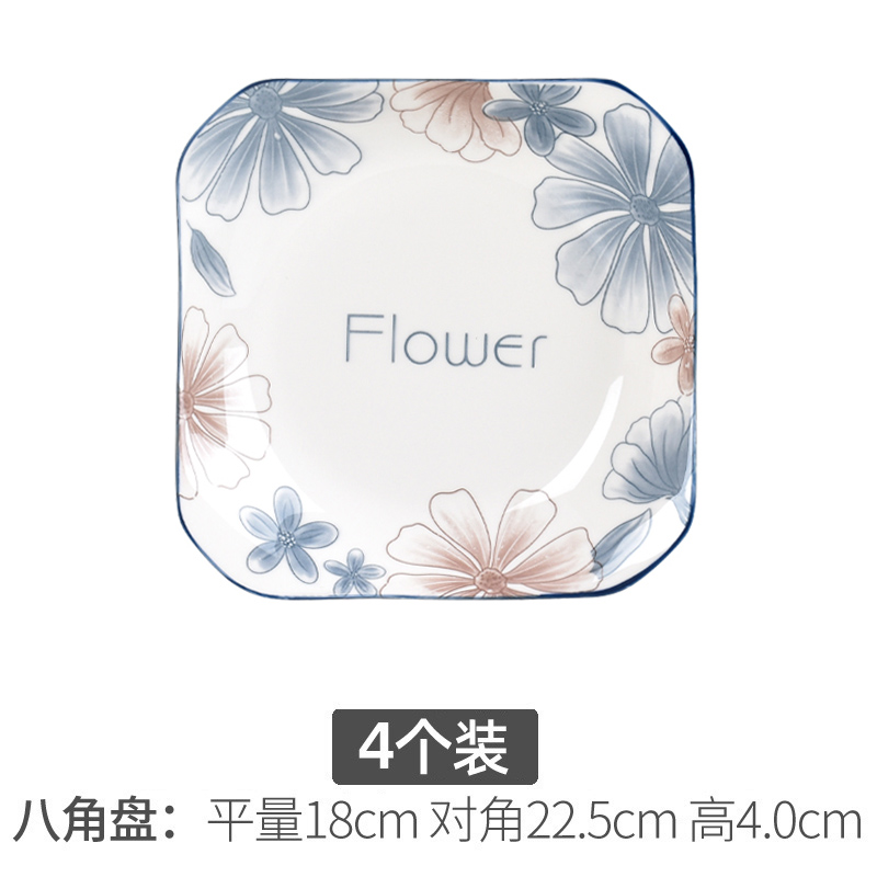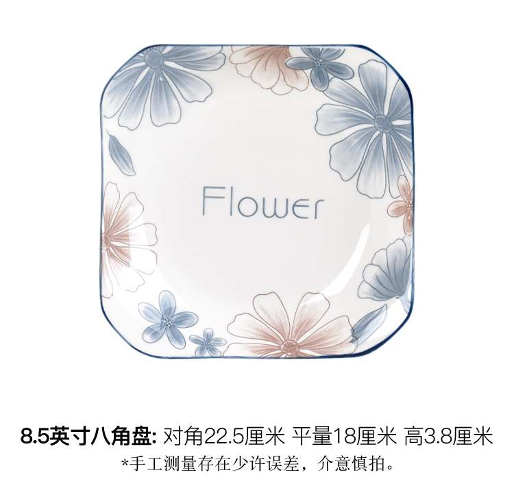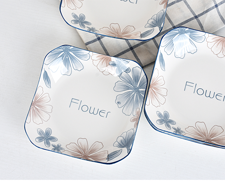 blue brown big flower 8.5-inch square plate 4