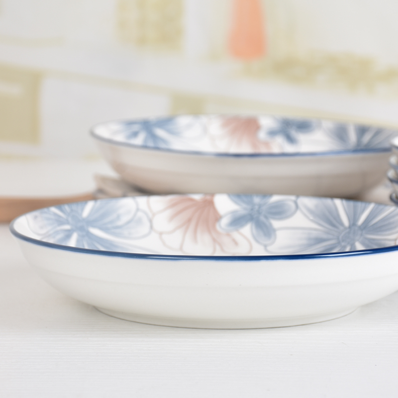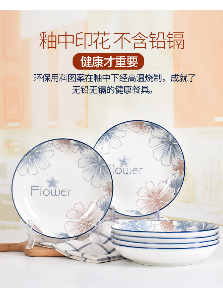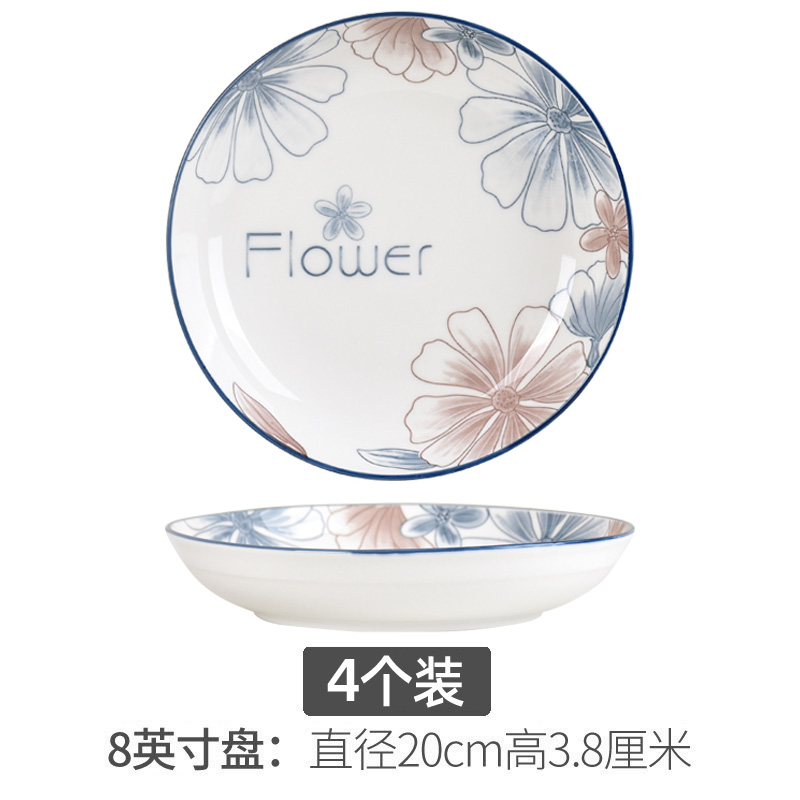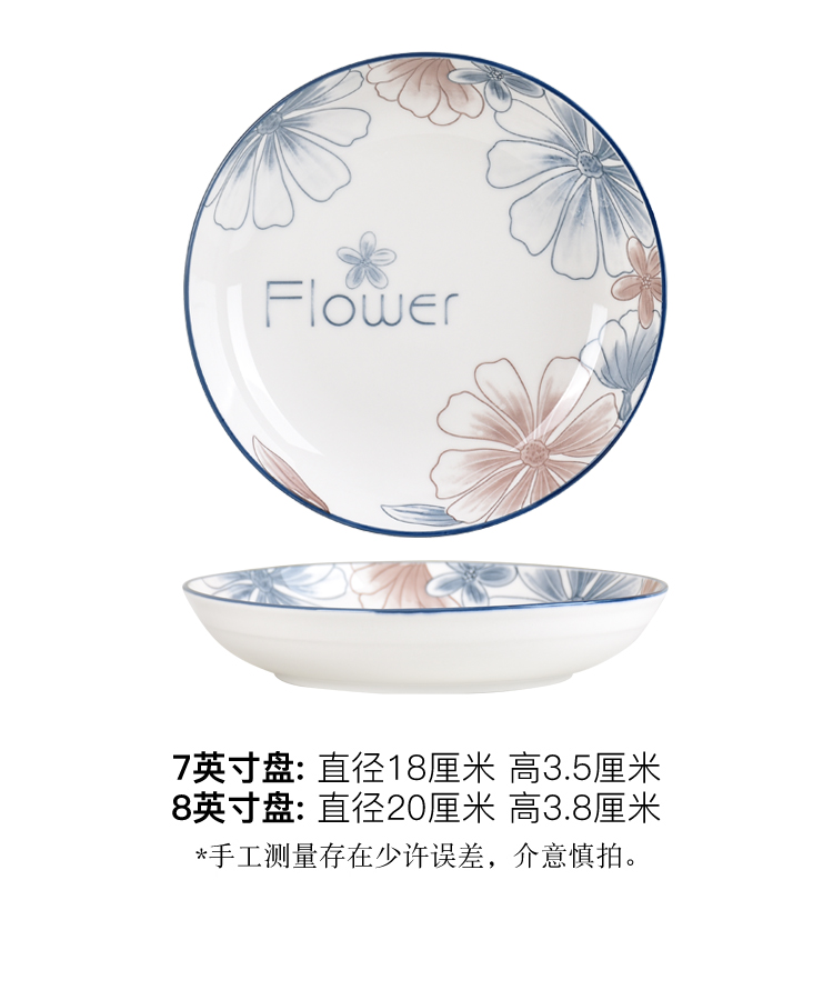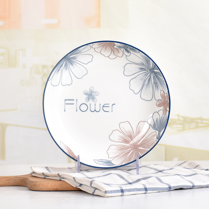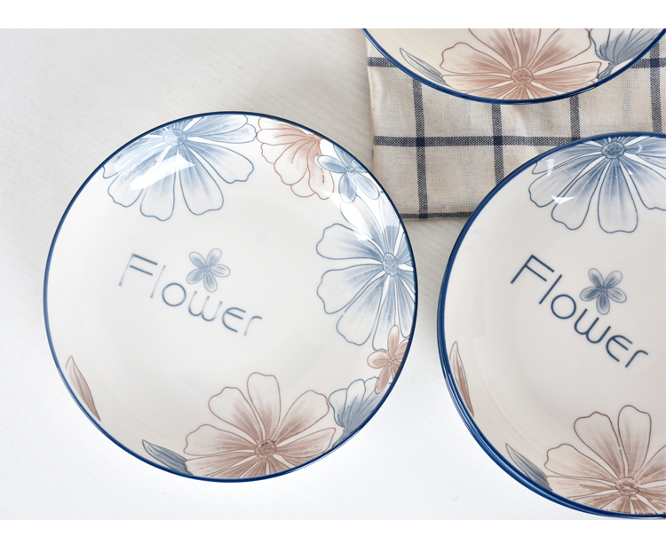 blue brown big flower 8-inch plate 6