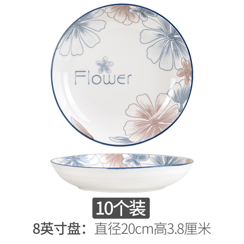 blue brown big flower 8-inch plate 10