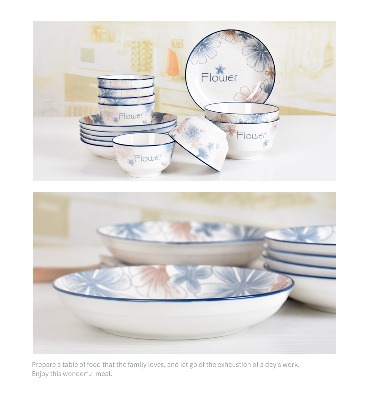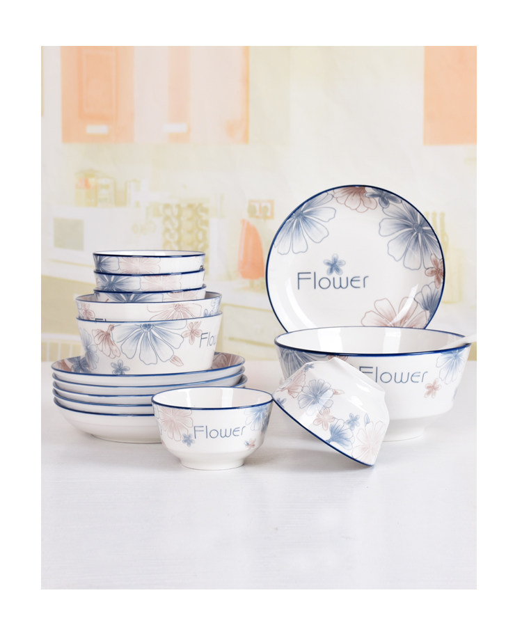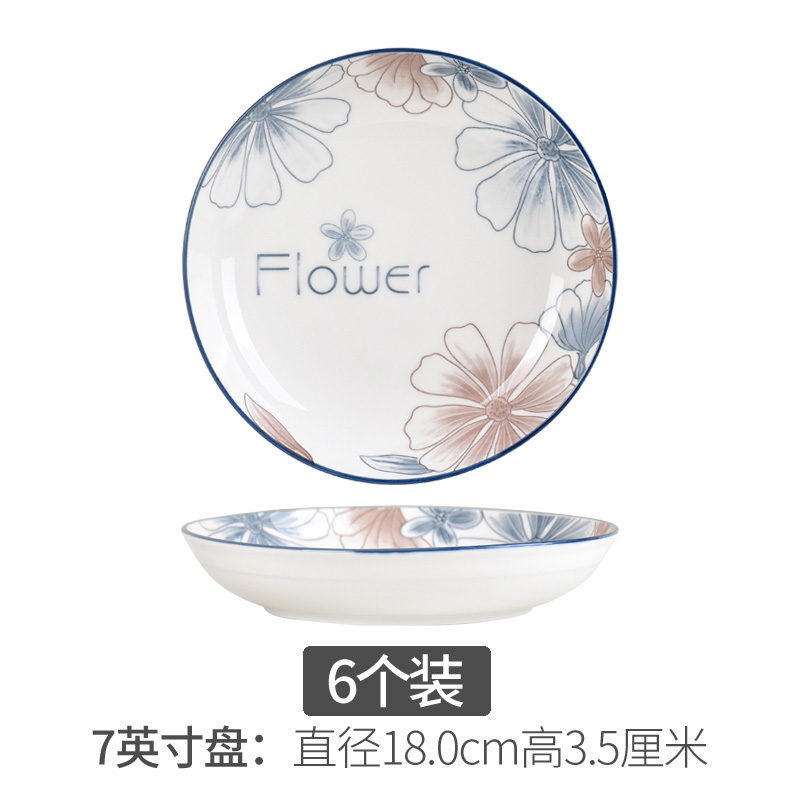 10 blue brown big flower 7-inch plates