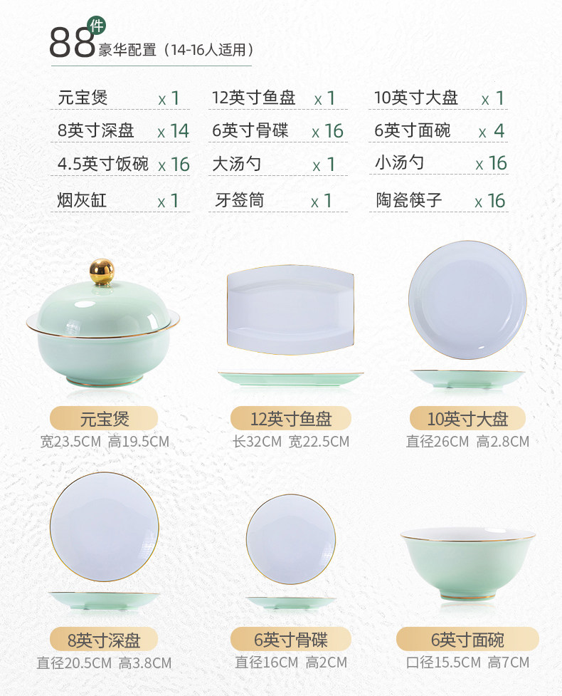 [88 pieces misty blue js with ingot pot] anti-scald design for 16 people/dishwasher microwave oven applicable