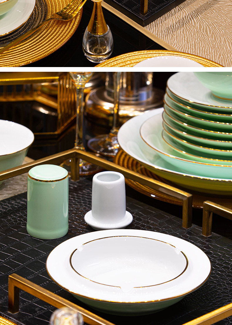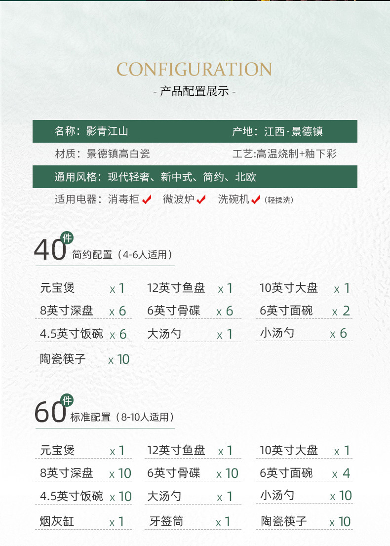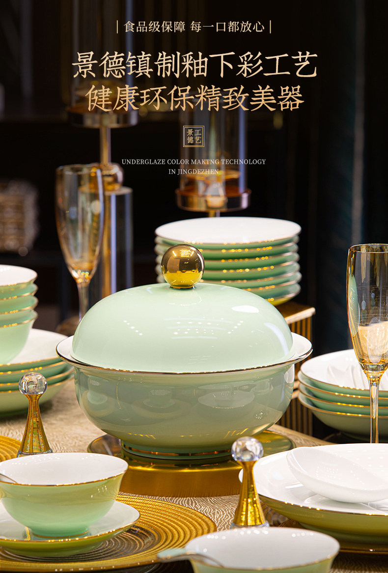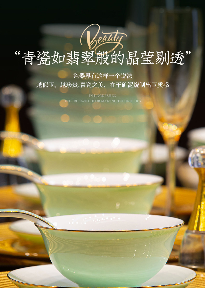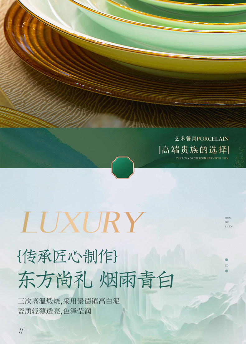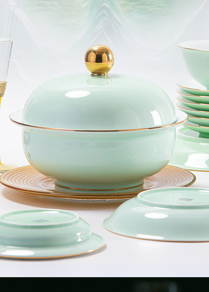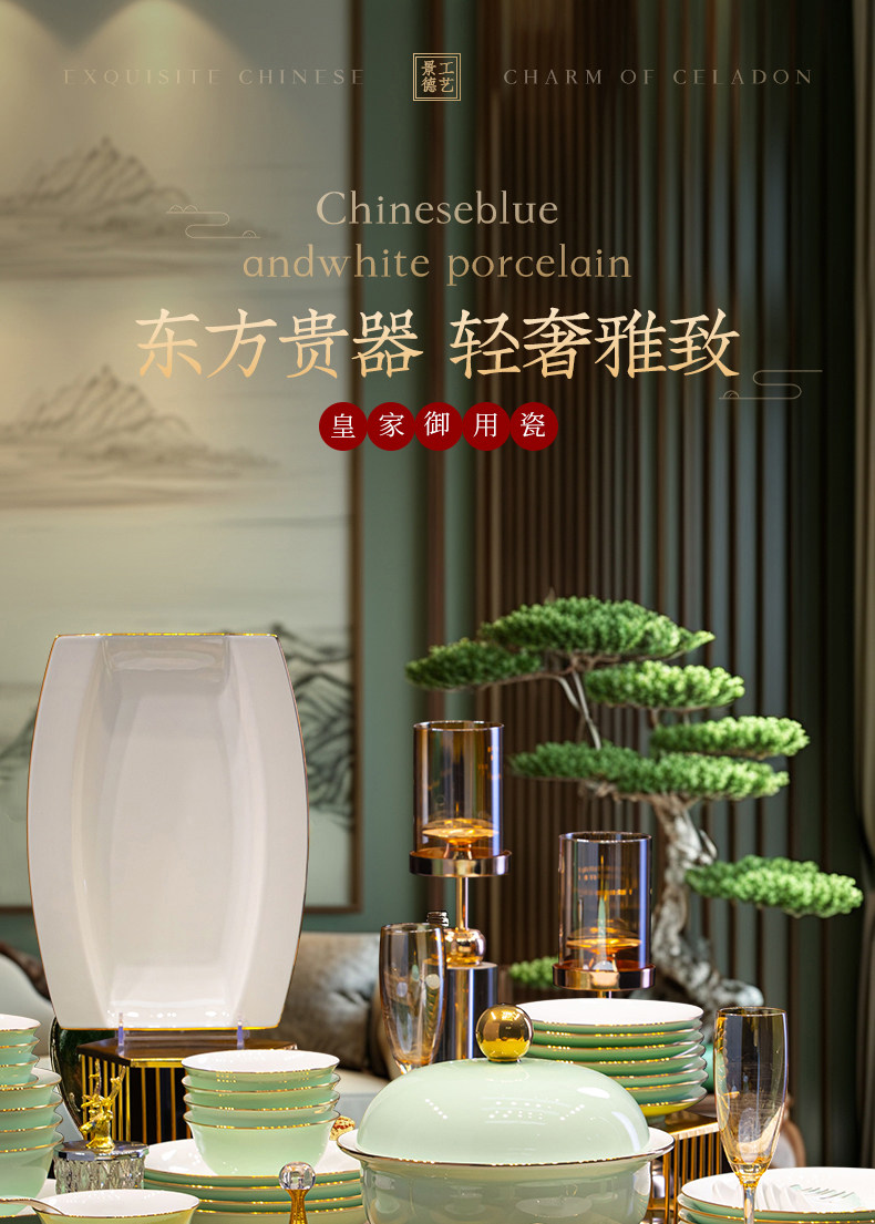 [60 pieces misty blue js with ingot pot] 10 people food anti-scald design/dishwasher microwave oven applicable