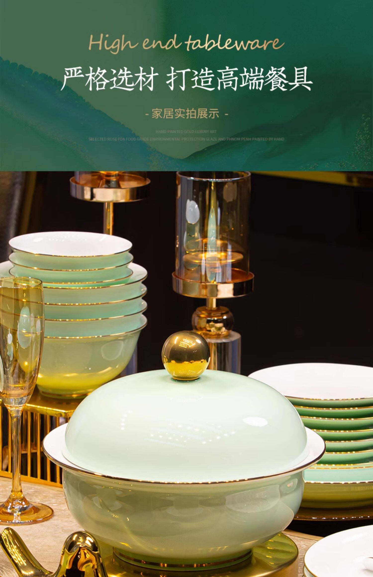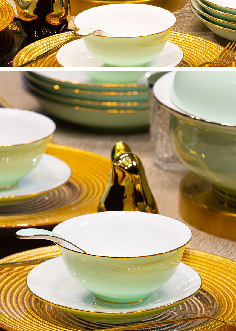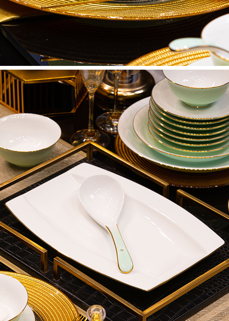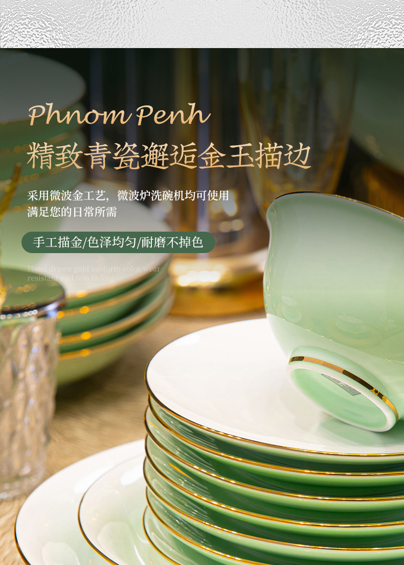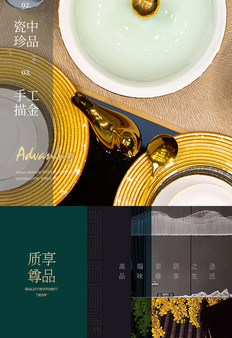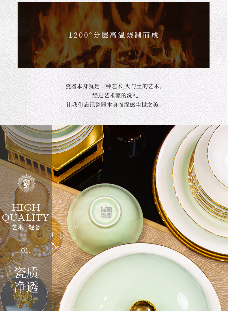 [60 pieces misty blue js with ingot pot] 10 people food anti-scald design/dishwasher microwave oven applicable