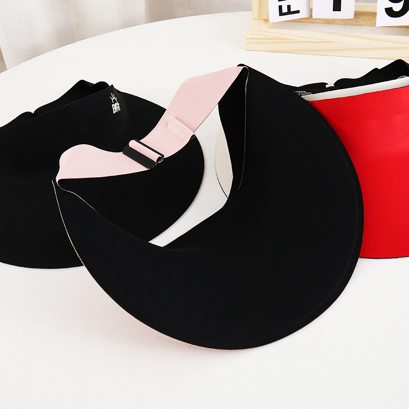 outdoor new crownless sun hat women's summer uv protection sun hat fresh big brim letter sun protection hat 中文版