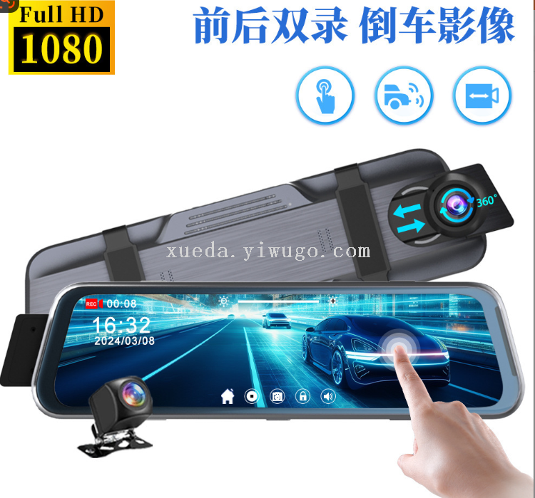 9.66 Full Screen Streaming Media Car Rearview Mirror Tachograph Dual Lens Double Recording Touch
