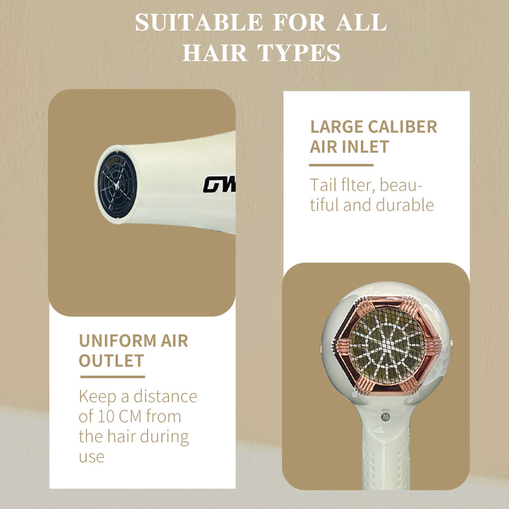 [quick hair drying does not hurt hair] adopt high-power motor, quick hair drying at the same time reduce static electricity, making hair soft and shiny. [intelligent temperature control] built-in intelligent temperature control system to avoid high temperature damage and protect scalp health. 【lightweight and portable】ergonomic design, lightweight body, long time use without tired hands.